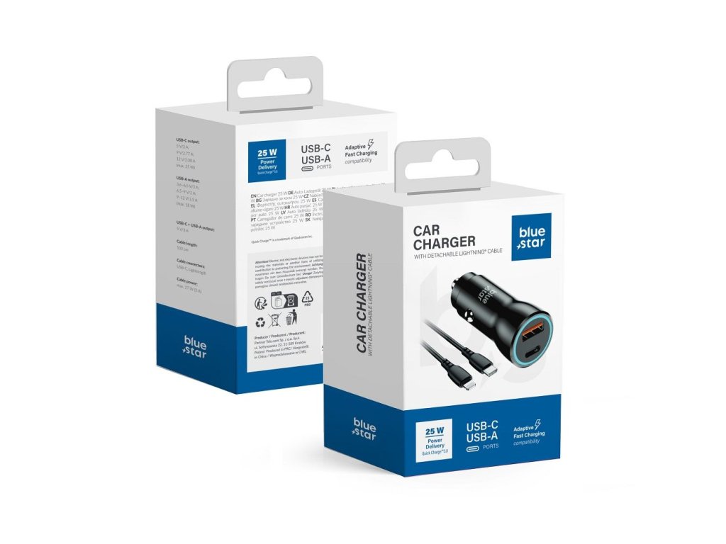 Nabíječka do auta Blue Star 25 W (PD, QC 3.0, AFC, PPS) s konektorem USB C a kabelem USB C na Lightning 3A