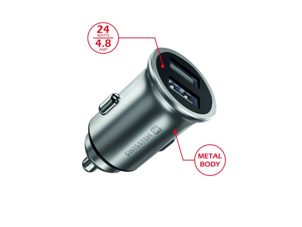 Swissten Duo Charge: Rychlá kovová nabíječka pro 2 telefony