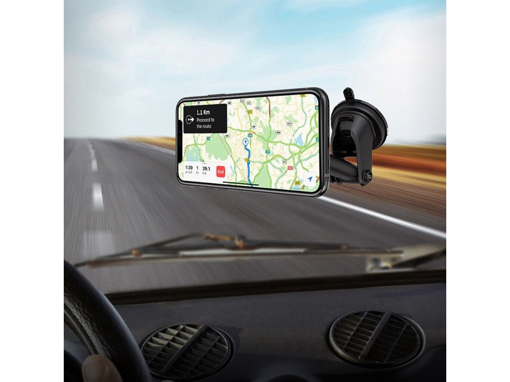 Držák bezpečně přiléhá k vaší palubní desce nebo čelnímu sklu, takže zůstane ve vaší preferované poloze, aniž by vás rušil při řízení.