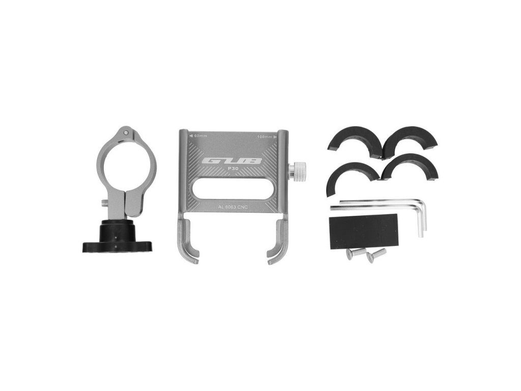 Hliníkový držák GUB P30 ve stříbrném provedení je praktickým pomocníkem pro každého cyklistu či jezdce na koloběžce, který chce mít telefon stále na očích. Vyroben z odolného hliníku AL 6063 CNC, který je lehký a přitom odolný vůči nárazům a povětrnostním podmínkám. Díky elegantnímu designu se skvěle hodí ke všem typům řídítek a výbavy.