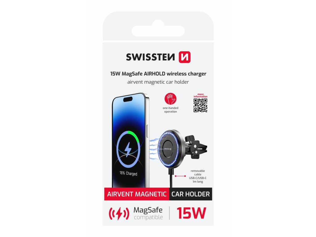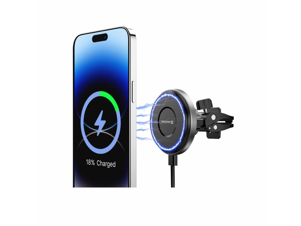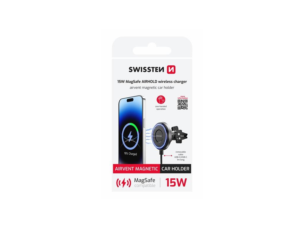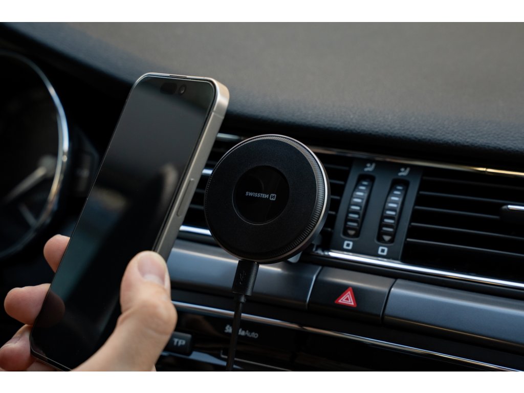 Magnetický držák do ventilace auta Swissten AirHold s bezdrátovým nabíjením 15 W / 7,5 W – MagSafe kompatibilní