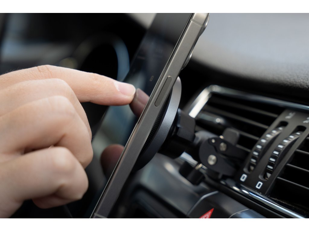 Silné magnety zajišťují, že telefon drží pevně i při jízdě po nerovnostech. Uchycení do ventilační mřížky je rychlé a jednoduché, bez nutnosti složité montáže nebo lepení. Držák nepřekáží ve výhledu řidiče a zachovává čistý vzhled interiéru.