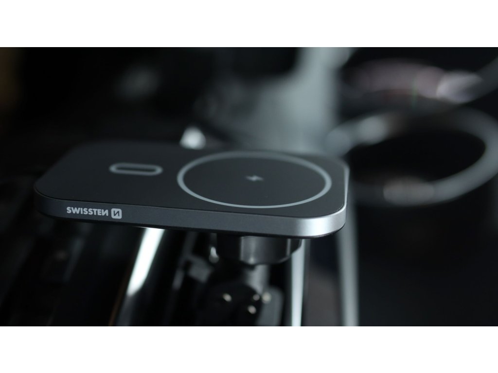 Držák Swissten podporuje magnetické bezdrátové nabíjení kompatibilní s MagSafe. Přesně rozmístěné magnety automaticky vycentrují iPhone 12 a novější modely k nabíjecí ploše a umožňují bezdrátové nabíjení výkonem až 15 W. Zároveň je zachována kompatibilita se standardem Qi, takže lze nabíjet i iPhone 8 a novější zařízení.