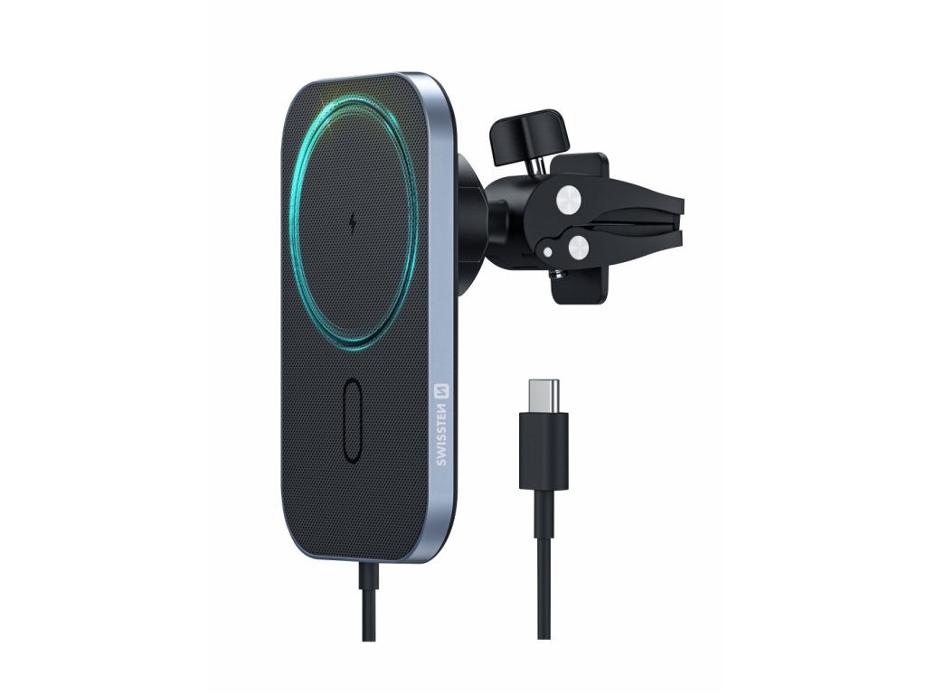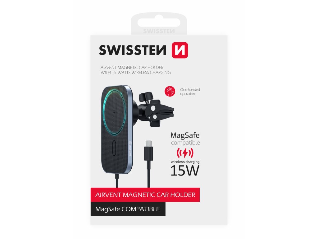 Magnetický držák do ventilace auta Swissten s bezdrátovým nabíjením 15 W – MagSafe kompatibilní