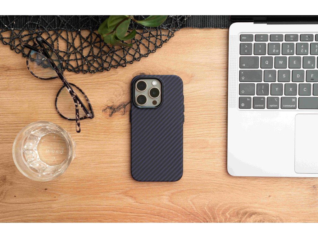 Povrchová úprava inspirovaná uhlíkovými vlákny dodává pouzdru luxusní a moderní vzhled. Fialové provedení působí originálně, elegantně a dodá telefonu osobitý styl vhodný pro práci i volný čas.