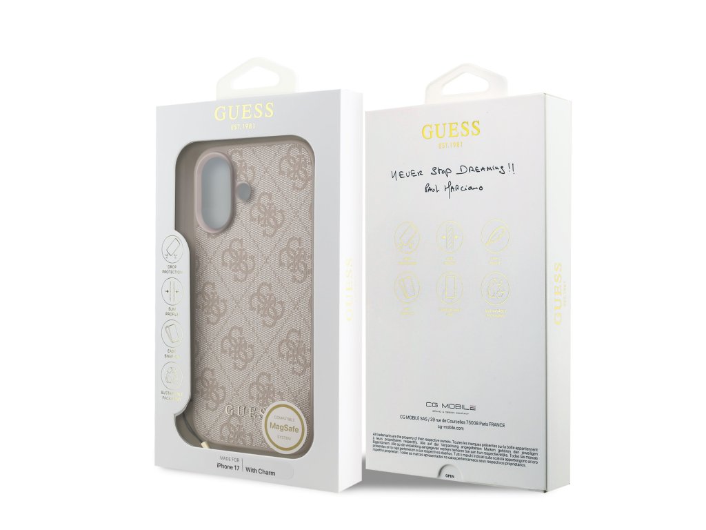 Guess 4G Charm MagSafe Zadní Kryt pro iPhone 17 Tone on Tone Pink