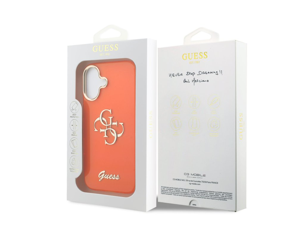 Guess IML 4G Script Metal Logo Zadní Kryt pro iPhone 17 Orange