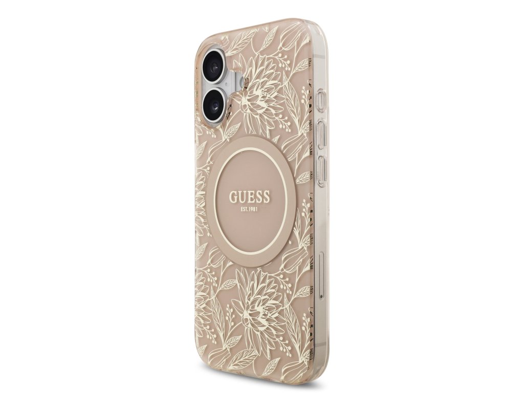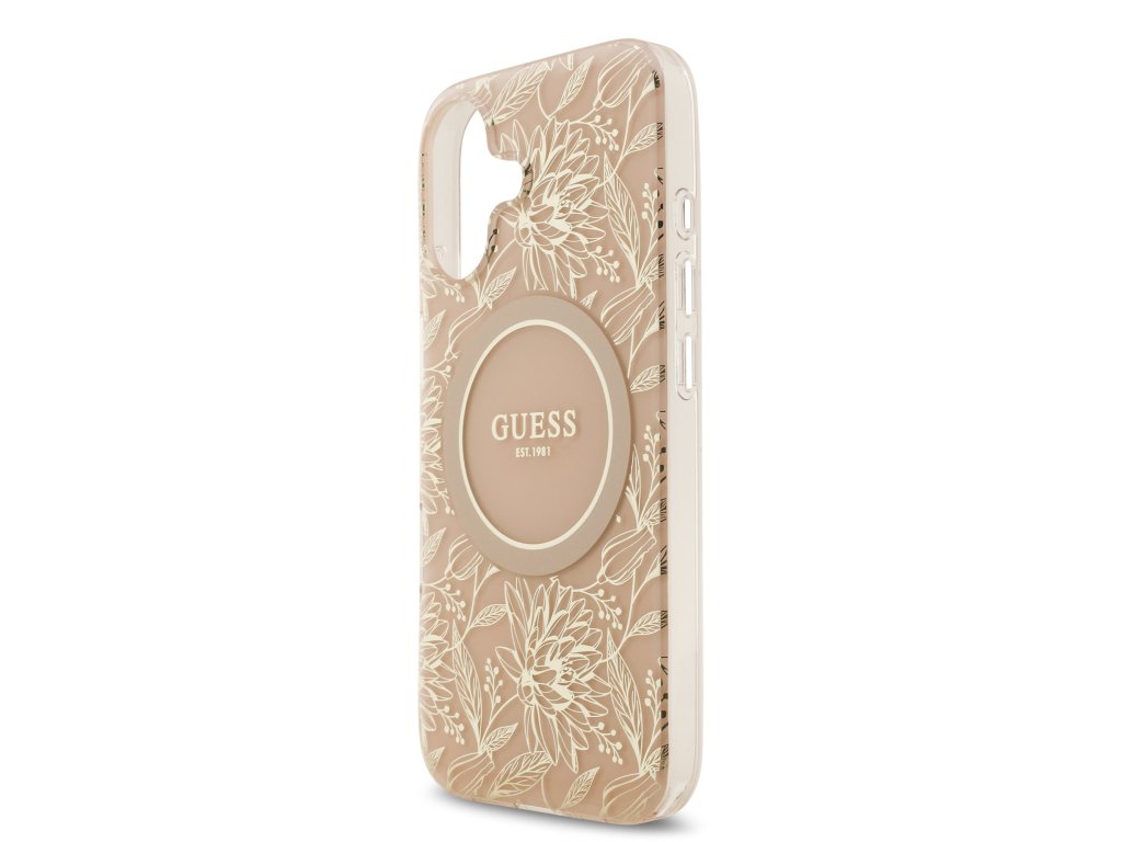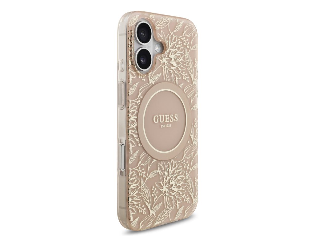 Guess IML Flowers Allover Strap MagSafe Zadní Kryt pro iPhone 17 Pink