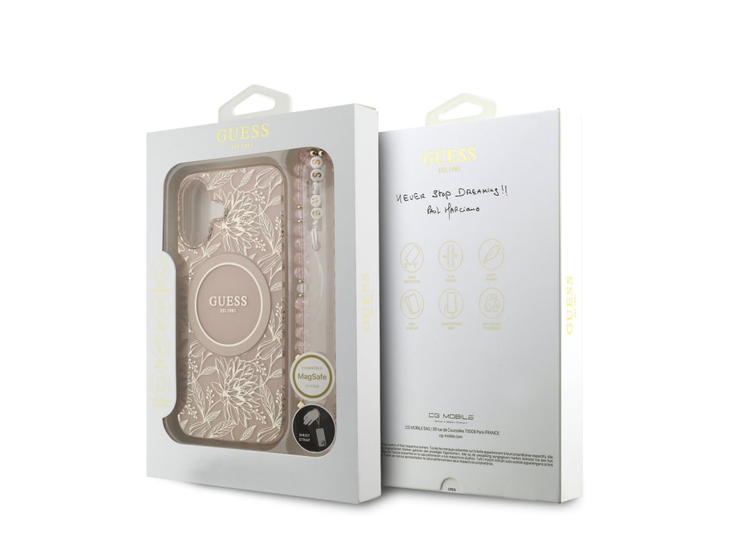 Guess IML Allover Pearl Strap MagSafe zadní kryt na telefon je skvělým doplňkem pro všechny milovníky stylu a praktičnosti. Tento kryt je vyroben z kombinace pevného PC plastu na zadní straně a TPU měkkého plastu na bocích, což vytváří dokonalou symbiózu odolnosti a pohodlí. Díky přesnému tvaru perfektně sedí na telefonu a umožňuje snadný přístup ke všem tlačítkům a konektorům. Tento kryt podporuje technologii MagSafe, což znamená, že je kompatibilní s bezdrátovým nabíjením a dalšími MagSafe doplňky. Design krytu vyniká logem Guess v kruhu, což z něj činí nejen praktický, ale i stylový doplněk, který skvěle doplní váš outfit. Součástí krytu je i korálkové poutko, které plní nejen estetickou funkci, ale zajistí také bezpečné držení telefonu v ruce. Pokud hledáte kryt, který kombinuje eleganci a funkčnost, je tento kousek od GUESS tou pravou volbou pro vás. Klíčové vlastnosti: - Originál Guess - Poutko kolem zápěstí součástí krytu - Lehký a odolný kryt z prémiového PC a TPU - Skvěle se drží v ruce a neklouže - Podpora MagSafe - Přesně kopíruje tvar telefonu a umožňuje snadný přístup k tlačítkům a konektorům. - Chrání telefon před prachem a poškrábáním - Stylový a funkční doplněk pro váš telefon i outfitDoplňkové parametry