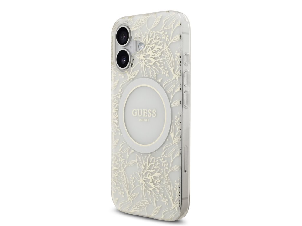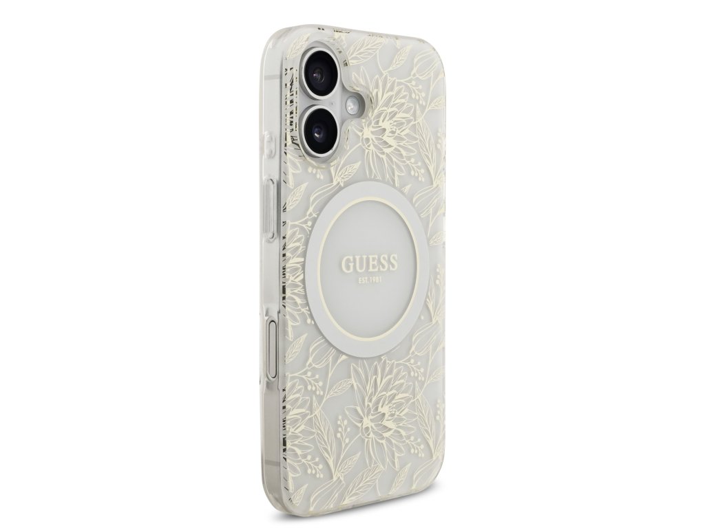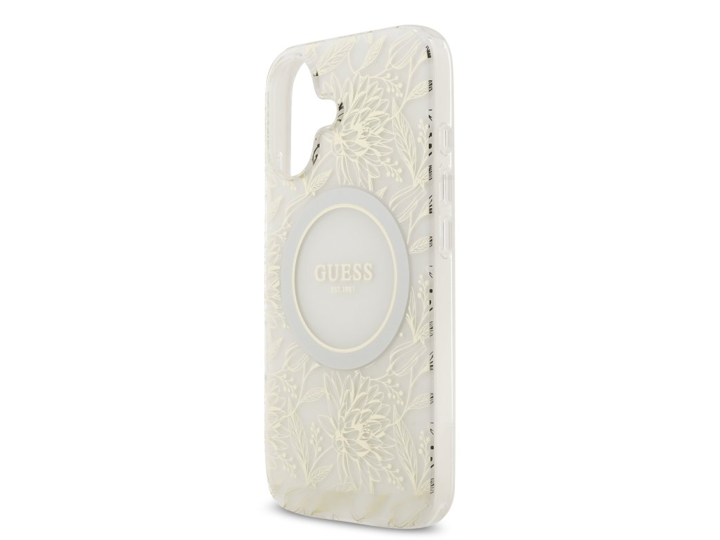 Guess IML Flowers Allover Strap MagSafe Zadní Kryt pro iPhone 17 White