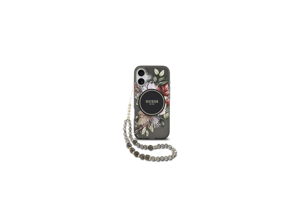 Guess IML Flowers Strap MagSafe Zadní Kryt pro iPhone 17 Black