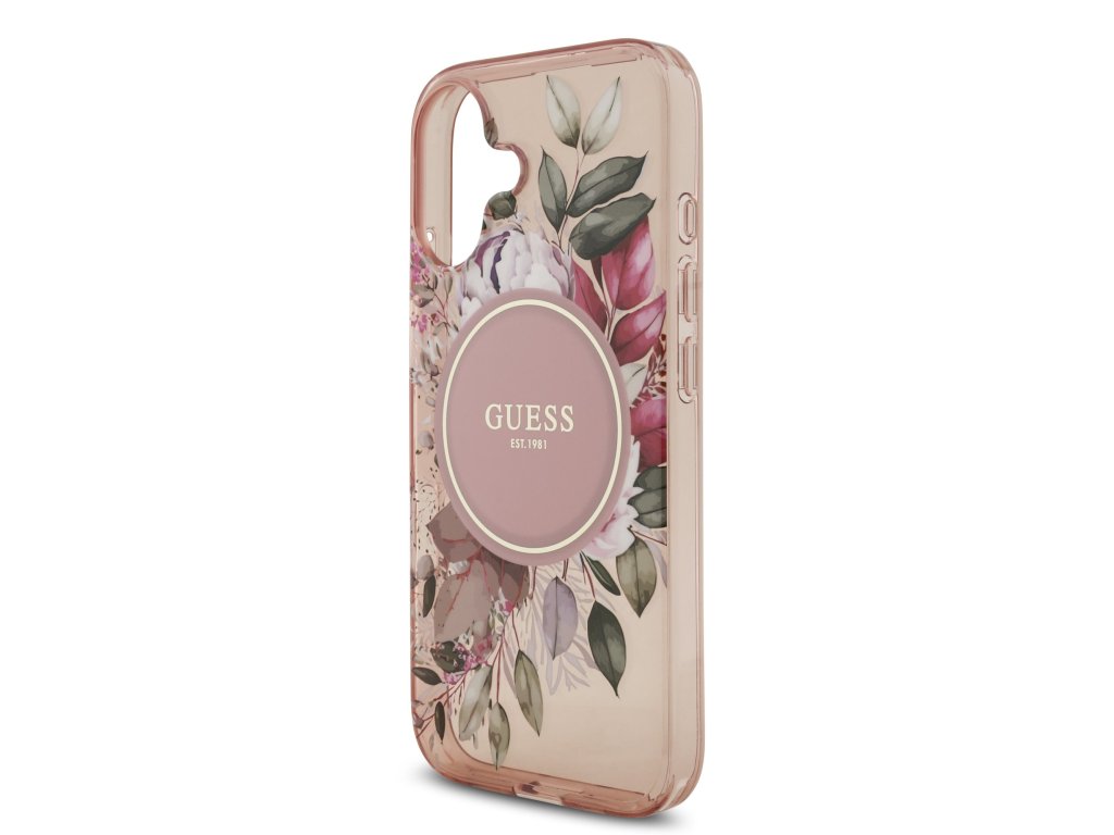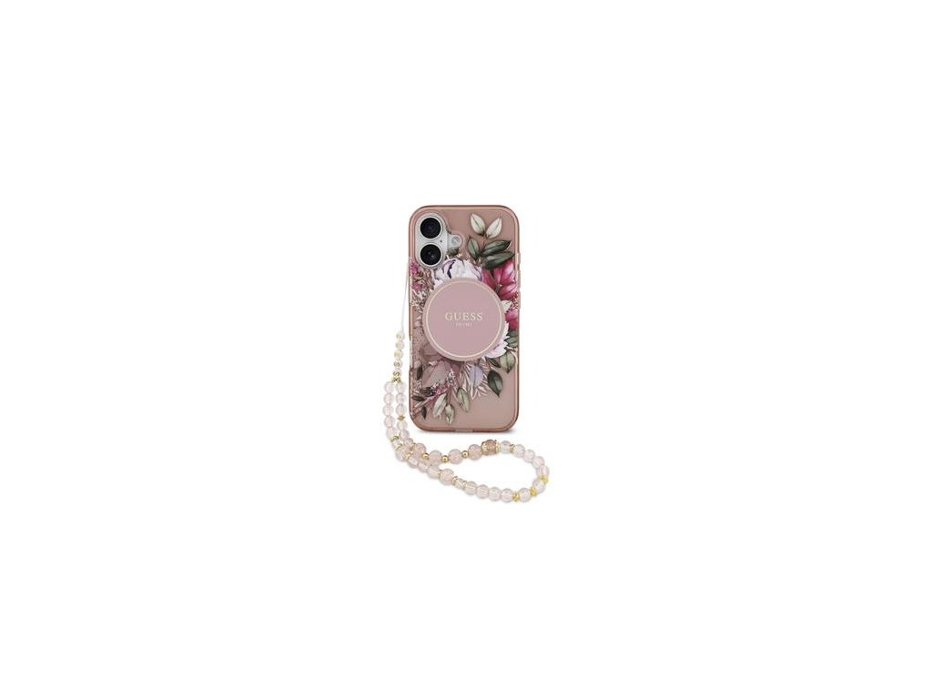 Guess IML Flowers Strap MagSafe Zadní Kryt pro iPhone 17 Pink