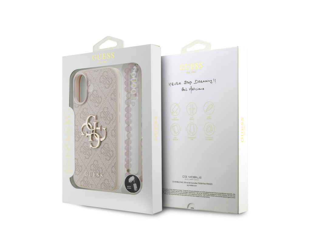 Prémiový zadní kryt Guess PU 4G Metal Logo Strap se vyznačuje elegantním, charakteristickým 4G vzorem, doplněným o logo GUESS. Kryt je vyrobený z lehkého a odolného polyuretanu (PU) s povrchovou úpravou z PU kůže a nabízí tak nejen skvělou ochranu telefonu, ale také pohodlí při používání. Tato povrchová úprava zajišťuje pevný úchop, což minimalizuje riziko, že telefon vyklouzne z ruky. Díky přesnému tvaru perfektně sedí na telefonu a umožňuje snadný přístup ke všem tlačítkům a konektorům. Tento prvotřídní kryt doplněný výrazným 4G logem a je skvělou nabídkou pro lidi, kteří si v módě cení nejen exkluzivního vzhledu, ale také vysoké kvality a funkčnosti. Kryt je doplněn elegantním korálovým poutkem, který můžete nasadit na zápěstí, aby vám telefon nevyklouzl z ruky. To vám zaručí bezpečné manipulování s Vaším zařízením. Je to nezbytný doplněk pro každého, kdo hledá kombinaci elegance a prestiže. Klíčové vlastnosti: - Originál Guess - Dominantní kovové logo 4G - Lehký a odolný kryt z PU a PU kůže - Skvěle se drží v ruce a neklouže - Přesně kopíruje tvar telefonu a umožňuje snadný přístup k tlačítkům a konektorům. - Chrání telefon před prachem a poškrábáním - Luxusní doplněk pro váš telefon i outfit - Doplněno stylovým korálovým poutkemDoplňkové parametry