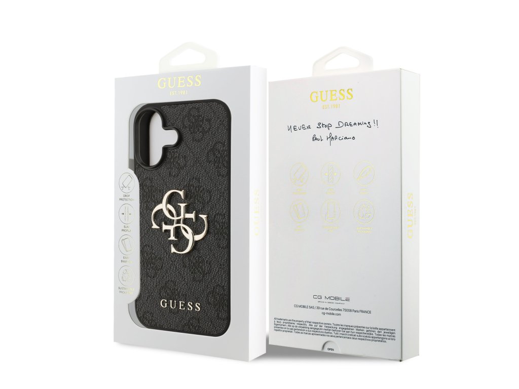 Prémiový zadní kryt Guess PU 4G Metal Logo se vyznačuje elegantním, charakteristickým 4G vzorem, doplněným o logo GUESS. Kryt je vyrobený z lehkého a odolného polyuretanu (PU) s povrchovou úpravou z PU kůže a nabízí tak nejen skvělou ochranu telefonu, ale také pohodlí při používání. Tato povrchová úprava zajišťuje pevný úchop, což minimalizuje riziko, že telefon vyklouzne z ruky. Díky přesnému tvaru perfektně sedí na telefonu a umožňuje snadný přístup ke všem tlačítkům a konektorům. Tento prvotřídní kryt doplněný výrazným 4G logem a je skvělou nabídkou pro lidi, kteří si v módě cení nejen exkluzivního vzhledu, ale také vysoké kvality a funkčnosti. Je to nezbytný doplněk pro každého, kdo hledá kombinaci elegance a prestiže. Klíčové vlastnosti: - Originál Guess - Dominantní kovové logo 4G - Lehký a odolný kryt z PU a PU kůže - Skvěle se drží v ruce a neklouže - Přesně kopíruje tvar telefonu a umožňuje snadný přístup k tlačítkům a konektorům. - Chrání telefon před prachem a poškrábáním - Luxusní doplněk pro váš telefon i outfitDoplňkové parametry