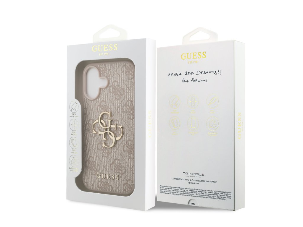 Prémiový zadní kryt Guess PU 4G Metal Logo se vyznačuje elegantním, charakteristickým 4G vzorem, doplněným o logo GUESS. Kryt je vyrobený z lehkého a odolného polyuretanu (PU) s povrchovou úpravou z PU kůže a nabízí tak nejen skvělou ochranu telefonu, ale také pohodlí při používání. Tato povrchová úprava zajišťuje pevný úchop, což minimalizuje riziko, že telefon vyklouzne z ruky. Díky přesnému tvaru perfektně sedí na telefonu a umožňuje snadný přístup ke všem tlačítkům a konektorům. Tento prvotřídní kryt doplněný výrazným 4G logem a je skvělou nabídkou pro lidi, kteří si v módě cení nejen exkluzivního vzhledu, ale také vysoké kvality a funkčnosti. Je to nezbytný doplněk pro každého, kdo hledá kombinaci elegance a prestiže. Klíčové vlastnosti: - Originál Guess - Dominantní kovové logo 4G - Lehký a odolný kryt z PU a PU kůže - Skvěle se drží v ruce a neklouže - Přesně kopíruje tvar telefonu a umožňuje snadný přístup k tlačítkům a konektorům. - Chrání telefon před prachem a poškrábáním - Luxusní doplněk pro váš telefon i outfitDoplňkové parametry