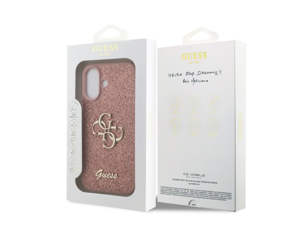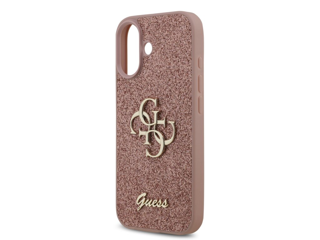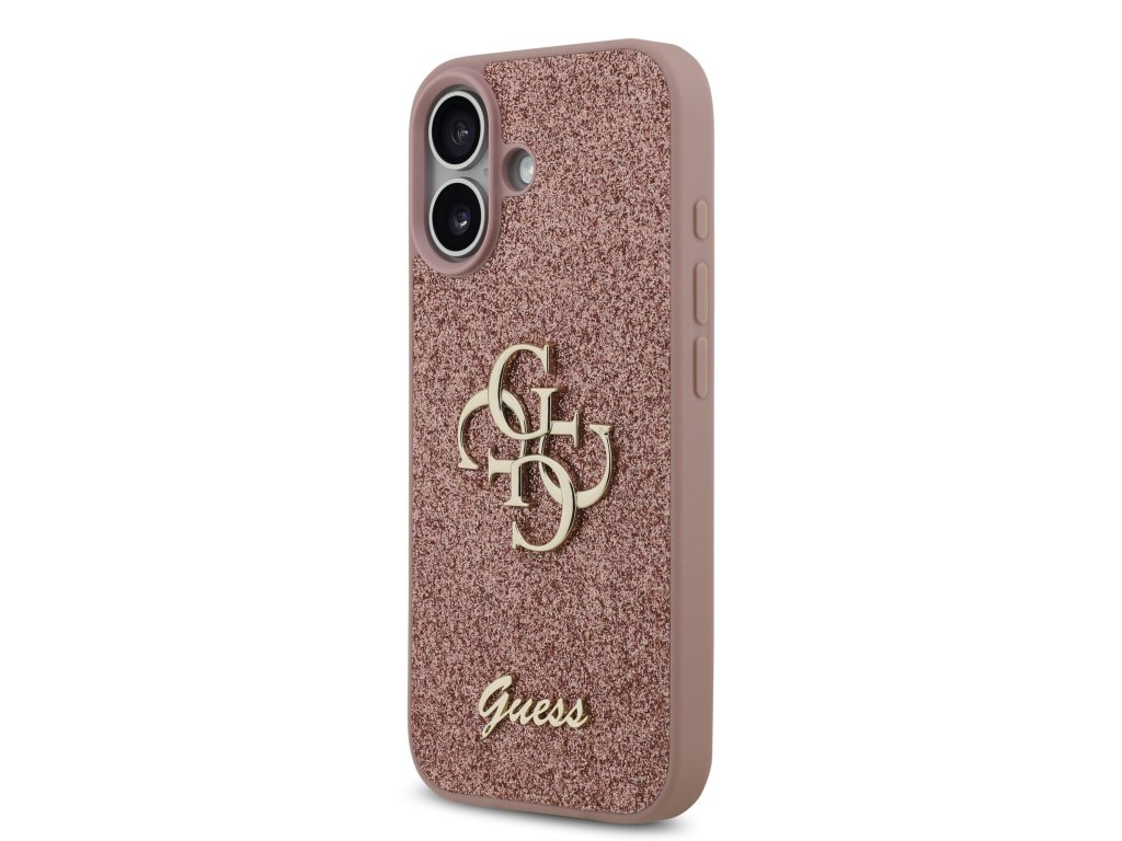 Guess PU Fixed Glitter 4G Metal Logo Zadní Kryt pro iPhone 17 Pink