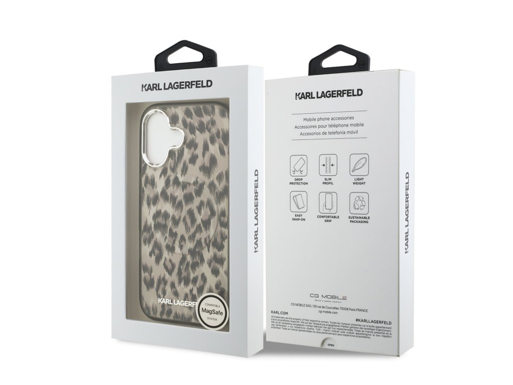 Karl Lagerfeld IML Leopard MagSafe zadní kryt je dokonalý doplněk pro váš telefon i outfit, který kombinuje funkčnost a styl v jednom. Tento kryt je vyroben z kombinace pevného PC plastu na zadní straně a TPU měkkého plastu na bocích, což vytváří dokonalou symbiózu odolnosti a pohodlí. Jeho pružný a měkký materiál se přizpůsobí tvaru vašeho telefonu a umožňuje snadný přístup ke všem tlačítkům a konektorům, zatímco textura krytu zajistí, že se skvěle drží v ruce a neklouže. Tento kryt podporuje technologii MagSafe, což znamená, že je kompatibilní s bezdrátovým nabíjením a dalšími MagSafe doplňky. Zaujměte výrazným a odvážným leopardím vzorem, který okamžitě přitahuje pozornost. Kombinace hnědých a černých tónů evokuje divoký a moderní styl. Vsaďte na kvalitu, originalitu a dokonalou ochranu pro váš telefon s prémiovým krytem Karl Lagerfeld. Klíčové vlastnosti: - Originál Karl Lagerfeld - Lehký a odolný kryt z prémiového PC a TPU - Skvěle se drží v ruce a neklouže - Podpora MagSafe - Přesně kopíruje tvar telefonu a umožňuje snadný přístup k tlačítkům a konektorům. - Chrání telefon před prachem a poškrábáním - Stylový a funkční doplněk pro váš telefon i outfitDoplňkové parametry