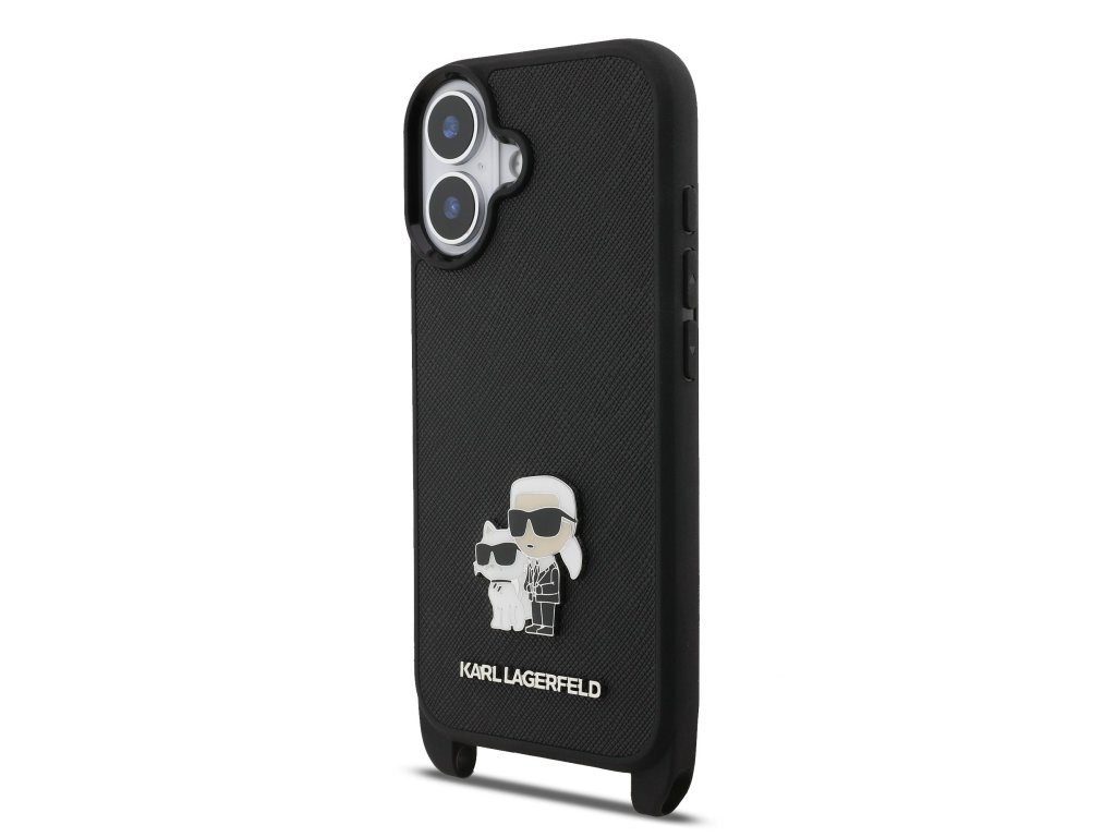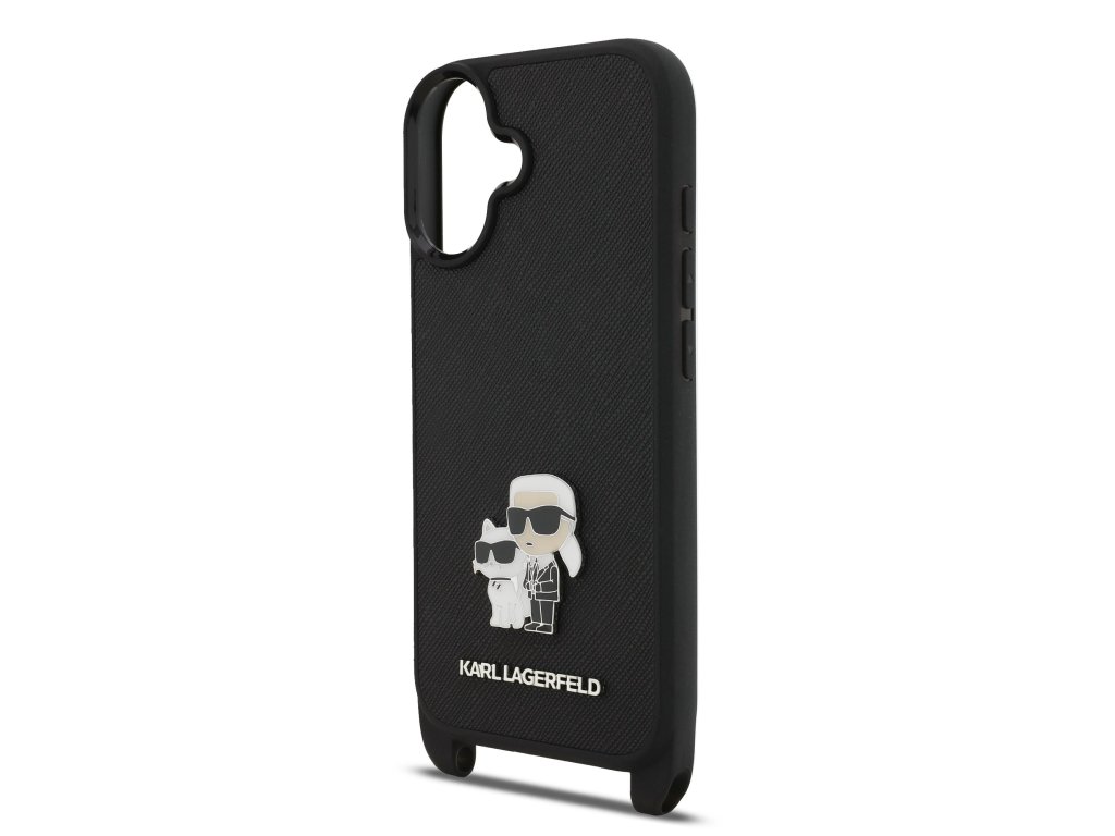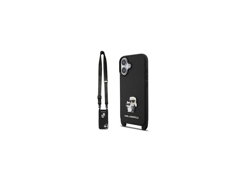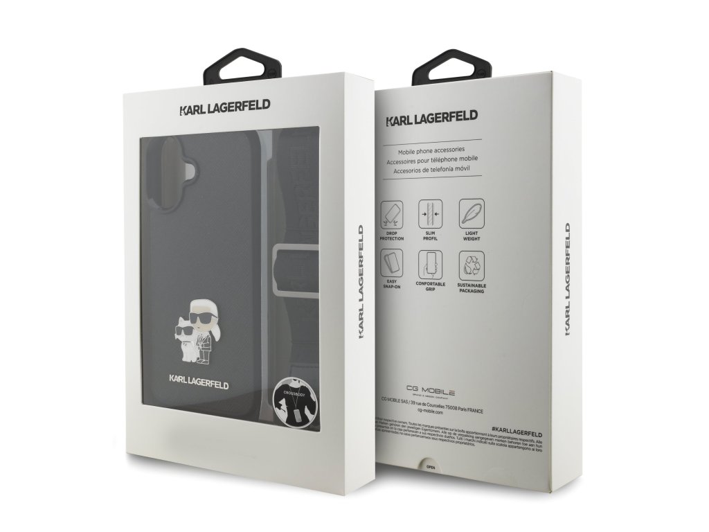 Karl Lagerfeld Saffiano Crossbody Popruh Metal Karl and Choupette Zadní Kryt pro iPhone 17 Black