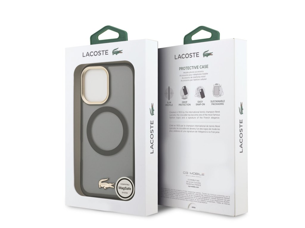 Lacoste PC/TPU Frosted Finish Gold Logo MagSafe Zadní Kryt je tu, aby tvůj iPhone nejen chránil, ale také podtrhl svůj styl a prémiový vzhled. Kryt je vyroben z kombinace odolného PC plastu a flexibilního TPU, což zajišťuje ideální rovnováhu mezi ochranou a pohodlím při používání. Nabízí spolehlivou ochranu proti pádům, poškrábání a každodenním nárazům, přičemž dokonale sedí na telefonu a umožňuje snadný přístup ke všem tlačítkům a konektorům. Design krytu je elegantní a moderní: matný „frosted finish“ povrch podtrhuje zlaté logo krokodýla a zlatý rám kolem zadních fotoaparátů, čímž dodává telefonu luxusní vzhled. Kryt podporuje technologii MagSafe, takže je kompatibilní s bezdrátovým nabíjením a dalšími MagSafe doplňky. Pokud hledáte kombinaci elegance, ochrany a praktičnosti, tento kryt od Lacoste je ideální volbou. Klíčové vlastnosti: Originál Lacoste Kombinace TPU a PC pro odolnost a pohodlí Slim profil – elegantní a pohodlné držení Drop protection – ochrana proti pádům Easy snap-on – rychlé nasazení a sejmutí Zlaté krokodýlí logo a zlatý rám kolem zadních fotoaparátů Podpora MagSafe Perfektně sedí na telefonu a umožňuje snadný přístup k tlačítkům a konektorům Stylový a funkční doplněk pro telefon i outfitDoplňkové parametry