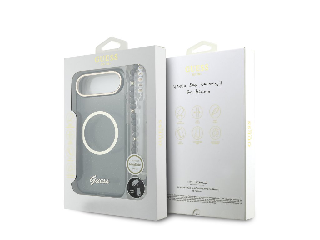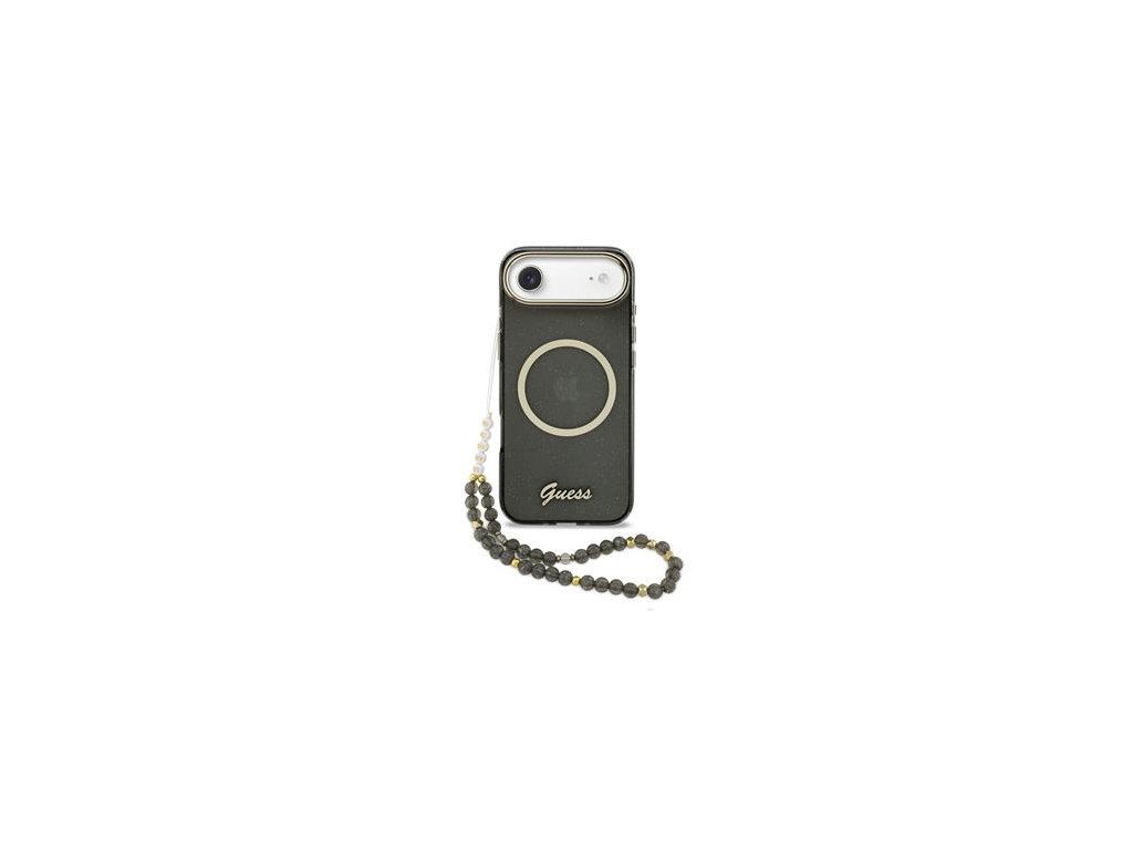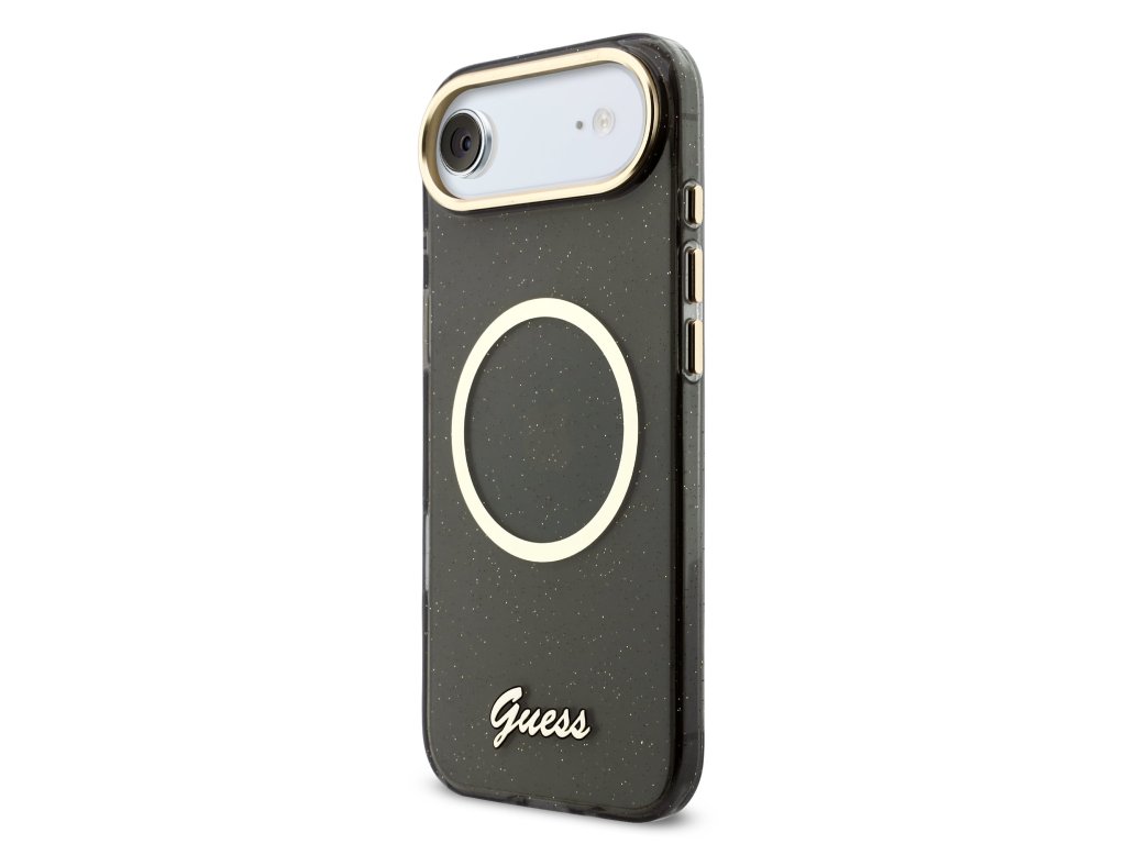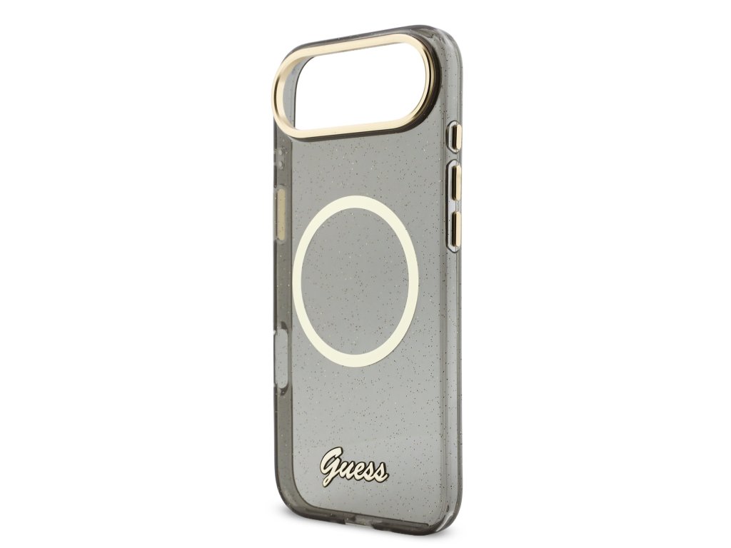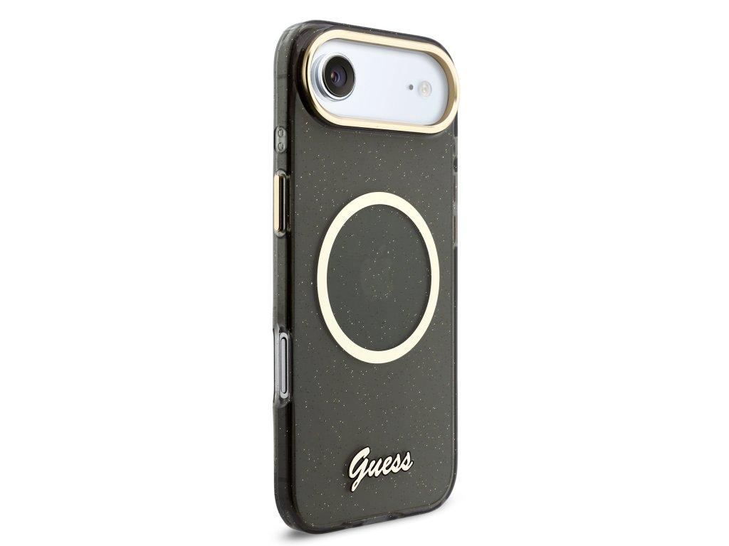 Guess IML Glitter Script Strap MagSafe Zadní Kryt pro iPhone Air Black