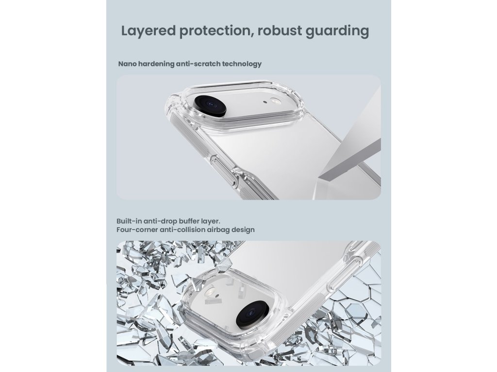 Nillkin Nature TPU PRO ochranný kryt telefonu. Kryt je oproti klasickému Nature TPU vyrobený z kombinace dvou materiálů PC/TPU. Odolný a pevný polykarbonát (PC) na zadní straně, který je odolný proti poškrábání a TPU pružný materiál na bocích. PC část krytu zůstává barevně stálá a nežloutne jako jiná pouzdra. Díky této kombinaci poskytne tu nejlepší ochranu pro Váš telefon. Ochrání ho spolehlivě před poškrábáním, prachem ale také velmi dobře při nechtěném pádu. Kryt je tenký a z čirého materiálu, který podtrhne design Vašeho telefonu. Díky nízké tloušťce podporuje i bezdrátové nabíjení. Přesné výřezy na ovládací prvky a potřebné konektory zajišťují pohodlnou obsluhu telefonu. Vlastnosti - Materiál TPU/PC - Pevný polykarbonát (PC) na zadní straně - PC část krytu nežloutne a zůstává barevně stálá - Měkké TPU boky - Perfektní ochrana telefonu - Plně přístupná tlačítka a konektory - Vyroben přesně na míru telefonuDoplňkové parametry