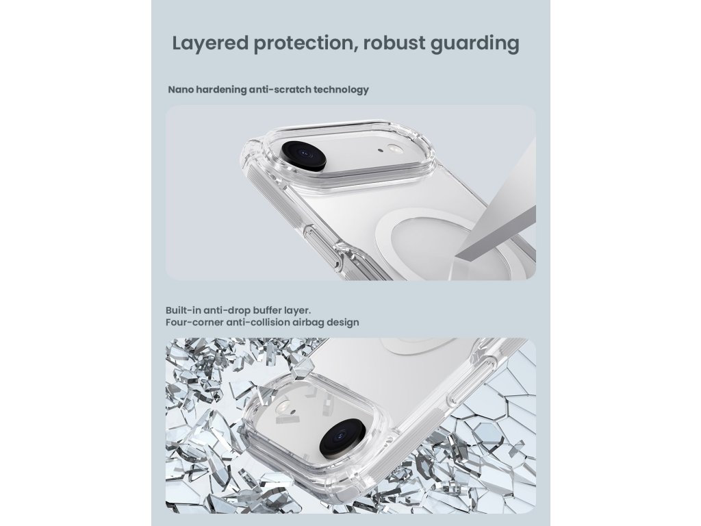 Nillkin Nature TPU PRO Magnetic ochranný kryt telefonu s integrovaným magnetem pro Apple MagSafe příslušenství. Kryt je oproti klasickému Nature TPU vybaven magnetem a je vyrobený z kombinace dvou materiálů PC/TPU. Odolný a pevný polykarbonát (PC) na zadní straně, který je odolný proti poškrábání a TPU pružný materiál na bocích. PC část krytu zůstává barevně stálá a nežloutne jako jiná pouzdra. Díky této kombinaci poskytne tu nejlepší ochranu pro Váš telefon. Ochrání ho spolehlivě před poškrábáním, prachem ale také velmi dobře při nechtěném pádu. Kryt je tenký a z čirého materiálu, který podtrhne design Vašeho telefonu. Díky nízké tloušťce podporuje i bezdrátové nabíjení. Přesné výřezy na ovládací prvky a potřebné konektory zajišťují pohodlnou obsluhu telefonu. Vlastnosti - Materiál TPU/PC - Pevný polykarbonát (PC) na zadní straně - PC část krytu nežloutne a zůstává barevně stálá - Měkké TPU boky - Integrovaný magnet pro Apple MagSafe příslušenství - Perfektní ochrana telefonu - Plně přístupná tlačítka a konektory - Vyroben přesně na míru telefonuDoplňkové parametry