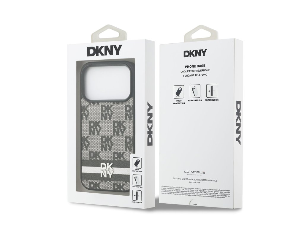 DKNY PU Leather Checkered Pattern and Stripe Zadní Kryt pro iPhone 17 Pro Black