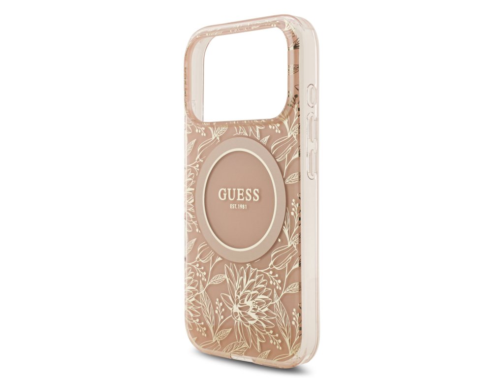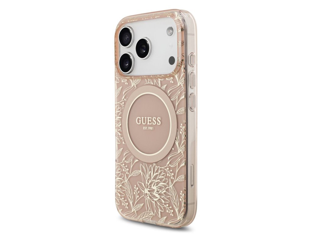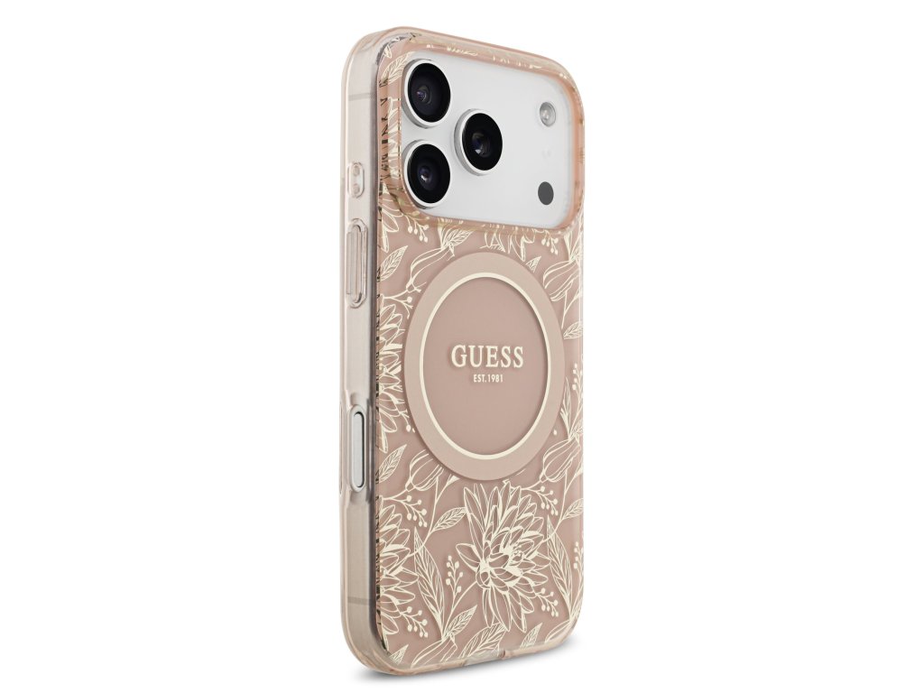 Guess IML Flowers Allover Strap MagSafe Zadní Kryt pro iPhone 17 Pro Pink