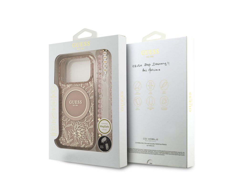 Guess IML Allover Pearl Strap MagSafe zadní kryt na telefon je skvělým doplňkem pro všechny milovníky stylu a praktičnosti. Tento kryt je vyroben z kombinace pevného PC plastu na zadní straně a TPU měkkého plastu na bocích, což vytváří dokonalou symbiózu odolnosti a pohodlí. Díky přesnému tvaru perfektně sedí na telefonu a umožňuje snadný přístup ke všem tlačítkům a konektorům. Tento kryt podporuje technologii MagSafe, což znamená, že je kompatibilní s bezdrátovým nabíjením a dalšími MagSafe doplňky. Design krytu vyniká logem Guess v kruhu, což z něj činí nejen praktický, ale i stylový doplněk, který skvěle doplní váš outfit. Součástí krytu je i korálkové poutko, které plní nejen estetickou funkci, ale zajistí také bezpečné držení telefonu v ruce. Pokud hledáte kryt, který kombinuje eleganci a funkčnost, je tento kousek od GUESS tou pravou volbou pro vás. Klíčové vlastnosti: - Originál Guess - Poutko kolem zápěstí součástí krytu - Lehký a odolný kryt z prémiového PC a TPU - Skvěle se drží v ruce a neklouže - Podpora MagSafe - Přesně kopíruje tvar telefonu a umožňuje snadný přístup k tlačítkům a konektorům. - Chrání telefon před prachem a poškrábáním - Stylový a funkční doplněk pro váš telefon i outfitDoplňkové parametry