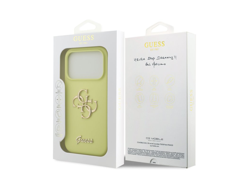 Guess Liquid Silicone 4G Metal Logo Zadní Kryt pro iPhone 17 Pro Yellow