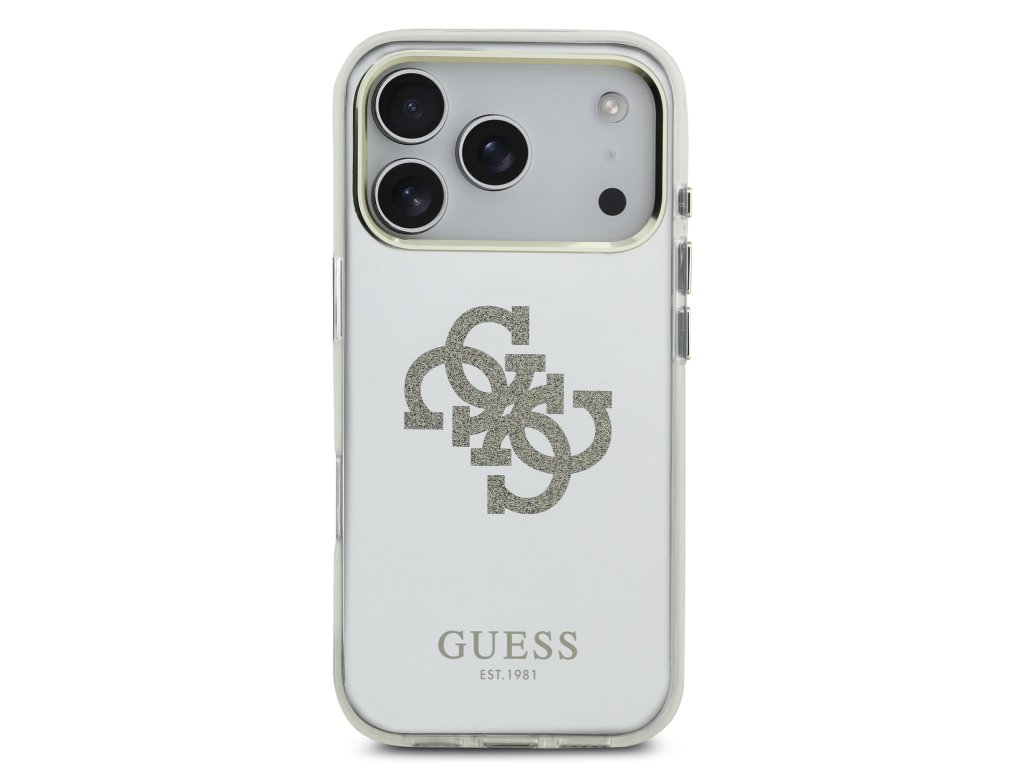Guess PC/TPU Mirror 4G Glitter Logo MagSafe Zadní Kryt pro iPhone 17 Pro Gold