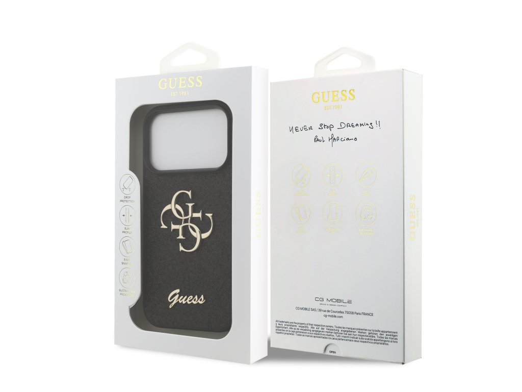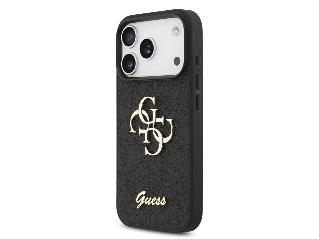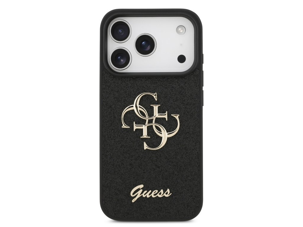 Guess PU Fixed Glitter 4G Metal Logo Zadní Kryt pro iPhone 17 Pro Black