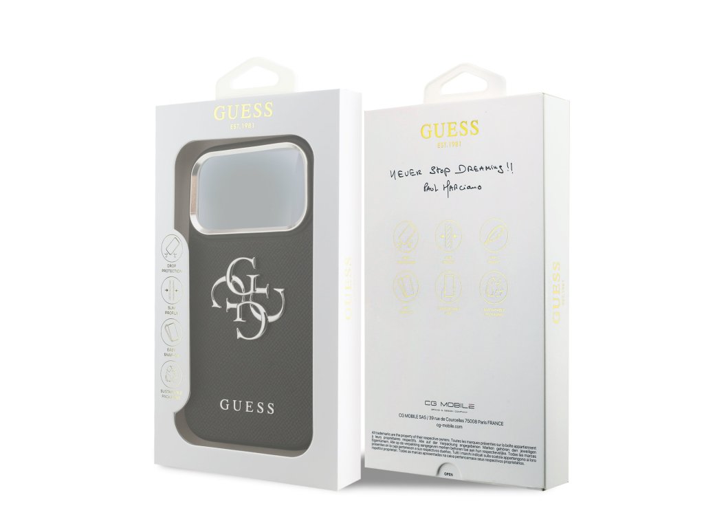 Guess PU Grained 4G Metal Logo Zadní Kryt pro iPhone 17 Pro Black