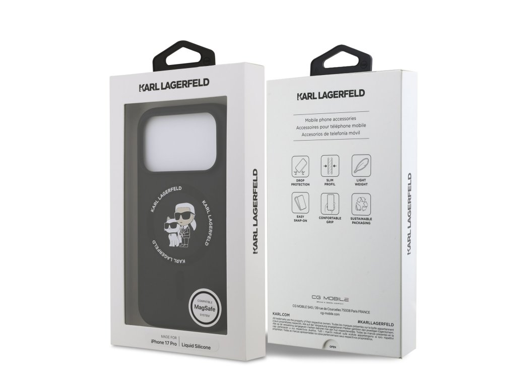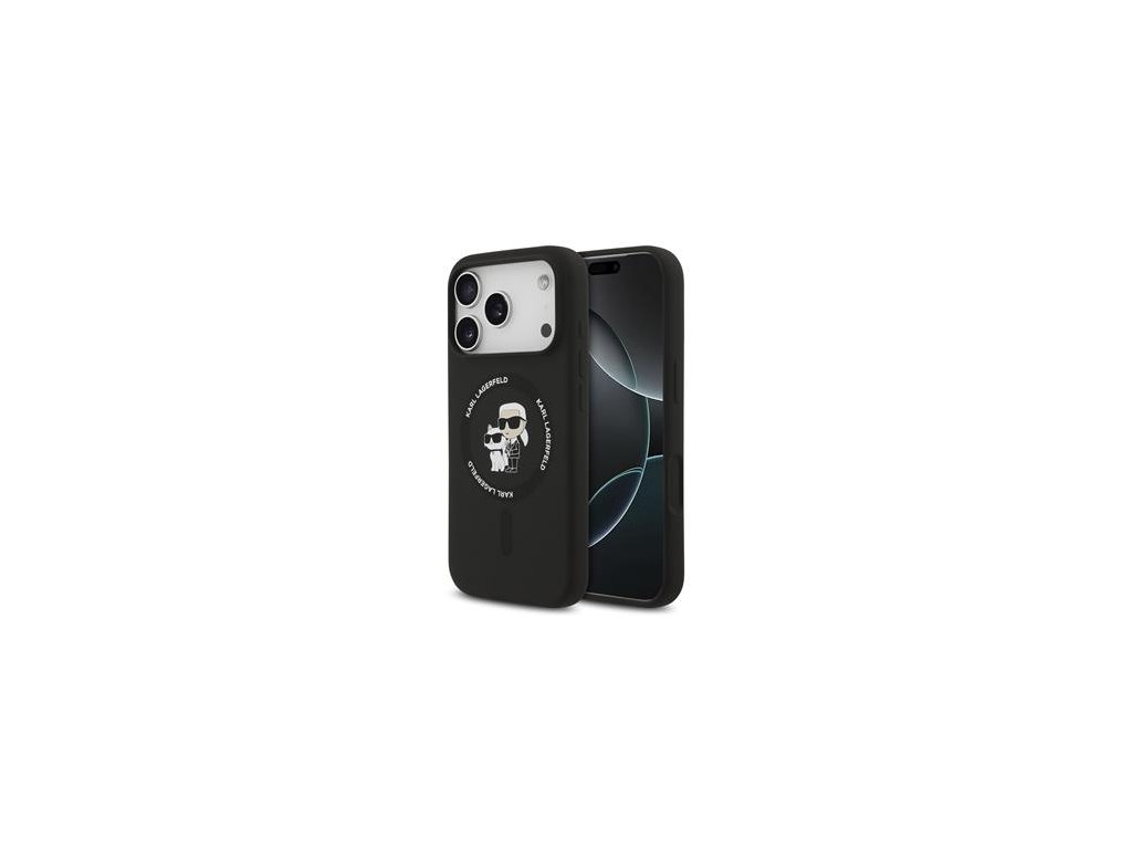 Karl Lagerfeld Liquid Silicone Karl and Choupette MagSafe Zadní Kryt pro iPhone 17 Pro Black