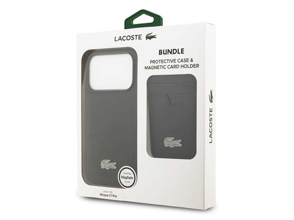 Lacoste Iconic Petit Pique MagSafe Zadní Kryt + Peněženka pro iPhone je stylový set, který dokonale kombinuje ochranu telefonu, praktičnost a eleganci. Tento bundle zahrnuje ochranný kryt a magnetickou peněženku, které spolu tvoří ideální duo pro každodenní použití. Zadní kryt je vyrobený z lehkého a odolného PU materiálu, který spolehlivě chrání váš telefon před poškrábáním, nárazy i nečistotami. Vnitřní výstelka z jemného mikrovlákna zajišťuje, že zůstane váš telefon v bezpečí a bez škrábanců. Díky preciznímu zpracování perfektně sedí na telefonu a umožňuje snadný přístup ke všem tlačítkům a konektorům. Povrchová úprava krytu zároveň zaručuje pohodlný a jistý úchop. Kryt plně podporuje technologii MagSafe, takže je kompatibilní s bezdrátovým nabíjením i dalšími MagSafe doplňky. Součástí balení je také magnetická peněženka ze stejného materiálu jako zadní kryt, která se díky magnetu snadno připevní na zadní stranu krytu. Nabízí dvě praktické kapsičky na platební karty, doklady nebo vizitky, a díky tenkému designu nezvětšuje zbytečně objem telefonu. Jak kryt, tak peněženku zdobí ikonické kovové logo krokodýla, které podtrhuje elegantní a prémiový vzhled celého setu. Pokud hledáte stylový a funkční doplněk, který spojuje ochranu, praktičnost a luxusní design, tento Lacoste bundle je tou správnou volbou. Klíčové vlastnosti: - Originál Lacoste - Set: ochranný kryt + magnetická peněženka - Lehký a odolný kryt z PU materiálu - Vnitřní výstelka z jemného mikrovlákna - Skvěle se drží v ruce a neklouže - Podpora MagSafe - Přesně kopíruje tvar telefonu a umožňuje snadný přístup k tlačítkům a konektorům. - Chrání telefon před prachem a poškrábáním - Ikonické kovové logo krokodýla - Stylový a funkční doplněk pro váš telefon i outfitDoplňkové parametry