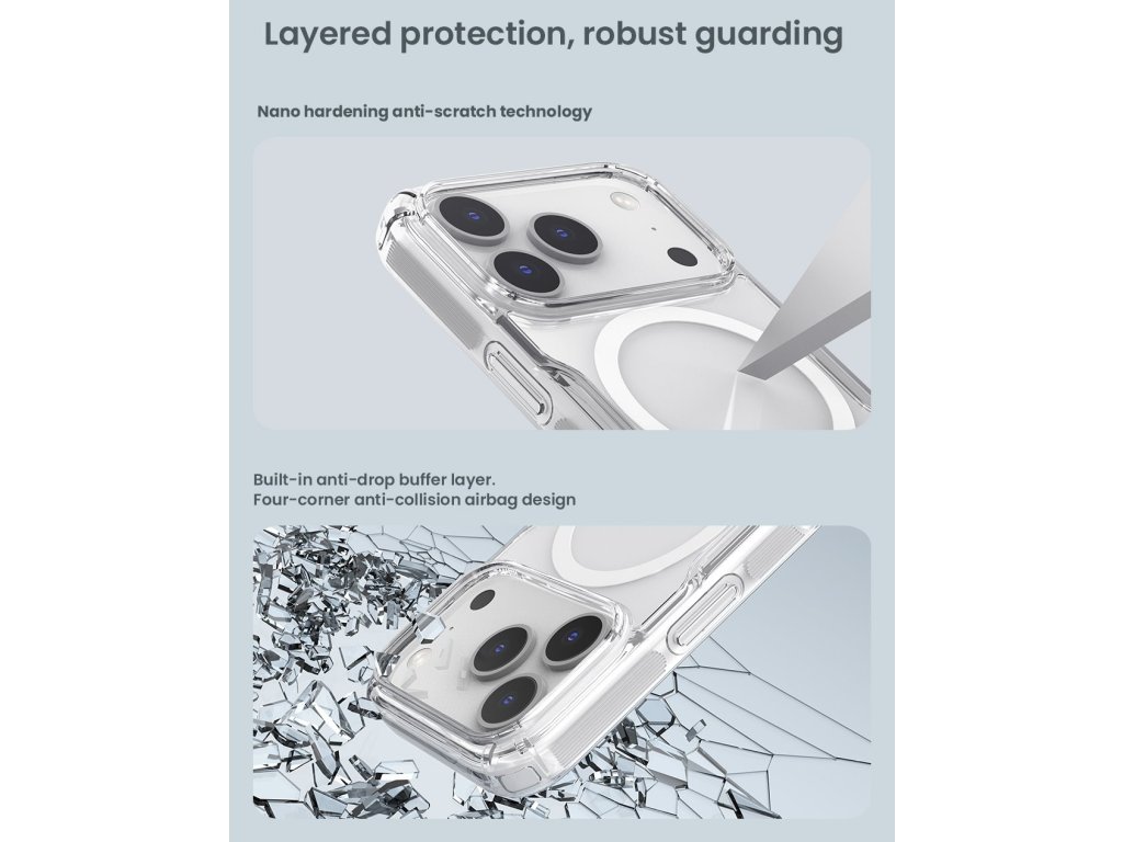 Nillkin Nature TPU PRO Magnetic ochranný kryt telefonu s integrovaným magnetem pro Apple MagSafe příslušenství. Kryt je oproti klasickému Nature TPU vybaven magnetem a je vyrobený z kombinace dvou materiálů PC/TPU. Odolný a pevný polykarbonát (PC) na zadní straně, který je odolný proti poškrábání a TPU pružný materiál na bocích. PC část krytu zůstává barevně stálá a nežloutne jako jiná pouzdra. Díky této kombinaci poskytne tu nejlepší ochranu pro Váš telefon. Ochrání ho spolehlivě před poškrábáním, prachem ale také velmi dobře při nechtěném pádu. Kryt je tenký a z čirého materiálu, který podtrhne design Vašeho telefonu. Díky nízké tloušťce podporuje i bezdrátové nabíjení. Přesné výřezy na ovládací prvky a potřebné konektory zajišťují pohodlnou obsluhu telefonu. Vlastnosti - Materiál TPU/PC - Pevný polykarbonát (PC) na zadní straně - PC část krytu nežloutne a zůstává barevně stálá - Měkké TPU boky - Integrovaný magnet pro Apple MagSafe příslušenství - Perfektní ochrana telefonu - Plně přístupná tlačítka a konektory - Vyroben přesně na míru telefonuDoplňkové parametry