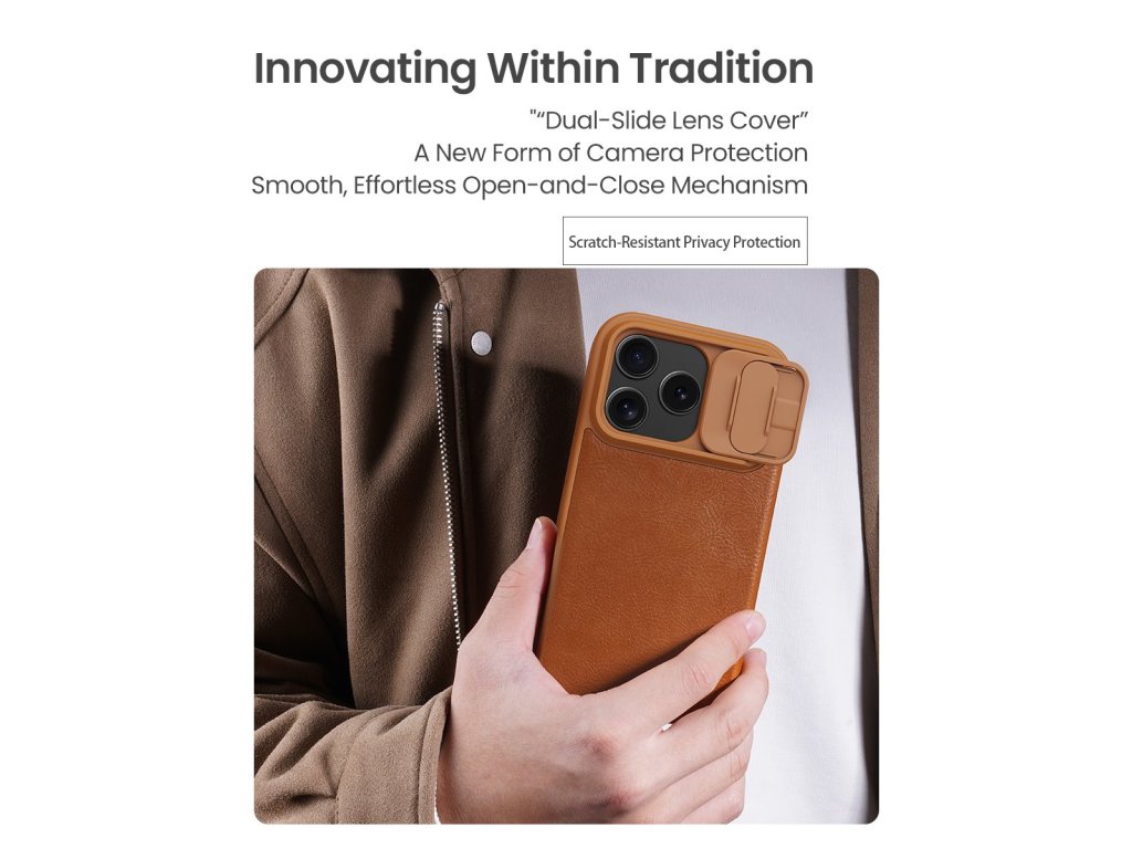 Nillkin QIN Book PRO pouzdro je vyrobeno z kvalitní PU kůže, otevírá se do boku jako knížka a navíc je oproti klasickému QIN Book vybaveno posuvným krytem čoček fotoaparátu. Chraňte maximálně Váš telefon před poškozením. Díky flipu je bezpečně ochráněn displej a posuvný kryt ochrání zase čočky fotoaparátu, když ho zrovna nepoužíváte. Na vnitřní části najdete dvě přihrádky například pro platební karty. Vnitřek pouzdra je pokryt příjemným povrchem z mikrovlákna a na zadní části je výřez pro fotoaparát. Přesné výřezy na ovládací prvky a potřebné konektory zajišťují pohodlnou obsluhu telefonu. To vše ve stylových barevných provedeních. Vlastnosti: - Otevírání do boku jako knížka - Perfektní ochrana displeje - Posuvný kryt fotoaparátu - Materiál: kvalitní syntetická kůže, plastový pevný zadní kryt - Vnitřek pouzdra je pokryt příjemným mikrovláknem - Dvě přihrádky na platební karty - Ochrana celého telefonu - Plně dostupná všechna tlačítka a konektory - Vyroben přesně na míru telefonu - Tenký designDoplňkové parametry