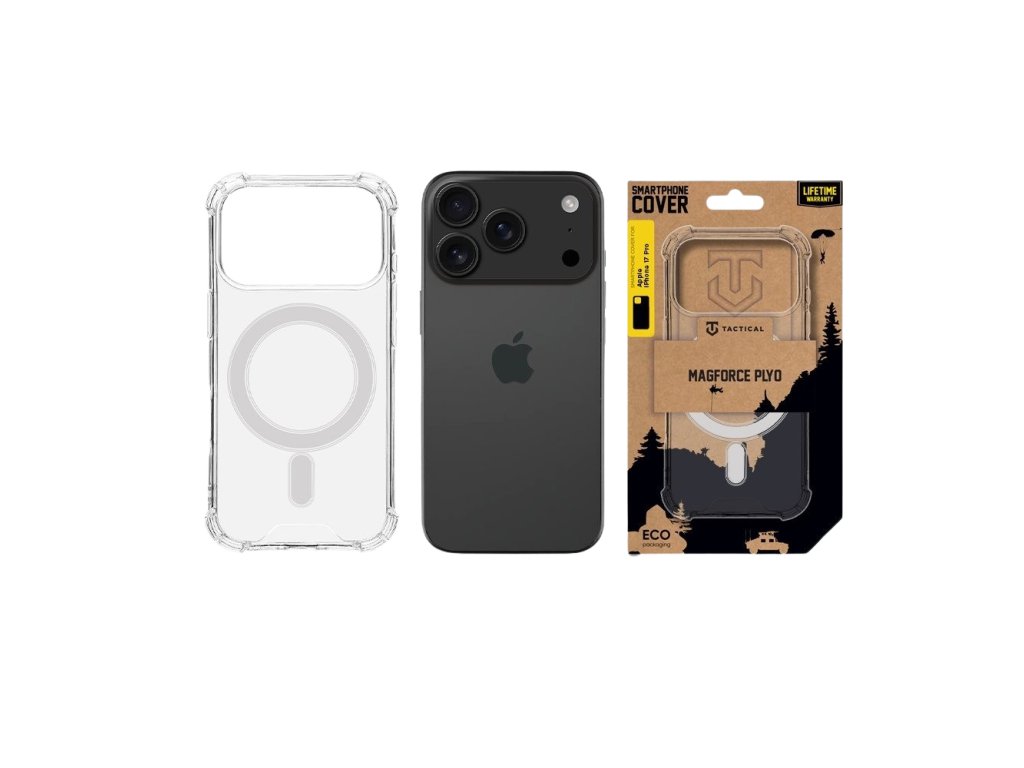 Tactical MagForce PLYO tenký čirý PC/TPU kryt na záda telefonu se zesílenými rohy pro maximální odolnost při pádu, ale i běžném nošení. Je vyrobený z dokonale čirého pružného silikonového materiálu a je dodáván v ekologickém balení z recyklovaného papíru. Kryt je vyroben z kombinace dvou materiálů. Pevného polykarbonátu na zadní straně a TPU pružného materiálu na bocích. Specialitou je silný magnet pro Apple MagSafe příslušenství. Kryt kryje celá záda, boky a rohy telefonu a chrání ho tak při pádu, ale i při každodenním používání. Tactical MagForce PLYO splňuje přísnou vojenskou normu MIL-STD-810 516, která zajišťuje nejvyšší odolnost proti nárazům a pádům. Tento kryt je navržen pro maximální ochranu tak, abyste se mohli soustředit jen na svá každodenní dobrodružství. Hlavním dva plusy tohoto krytu jsou, že sedí přesně na daný typ telefonu a zároveň zůstávají plně dostupné všechny ovládací prvky a konektory a že extrémně ochraňuje nejzranitelnější část telefonu jakou jsou jeho rohy. Navíc lehce vyvýšené okraje chrání displej telefonu v případě, že pokládáte telefon displejem dolů. Pokud preferujete kryt, který nebude rušit vzhled telefonu a chcete, aby byla vidět i barva telefonu, je Tactical MagForce PLYO volba přesně pro vás. Navíc jak je u značky Tactical zvykem, balení je kompletně vyrobeno z recyklovaného papíru. NEODOLATELNĚ ODOLNÝ U nás v Tactical dbáme na to, aby věci něco vydržely a za kvalitou svých výrobků si stojíme! Proto jsme v rámci nadstandartní péče Tactical schopni na tento produkt nabídnout DOŽIVOTNÍ ZÁRUKU. BE ECO My v Tactical máme rádi přírodu. Všechny naše produkty jsou balené do ECO krabiček z recyklovaného papíru tak, aby co nejméně zatěžovaly životní prostředí. Myslete takticky!Doplňkové parametry