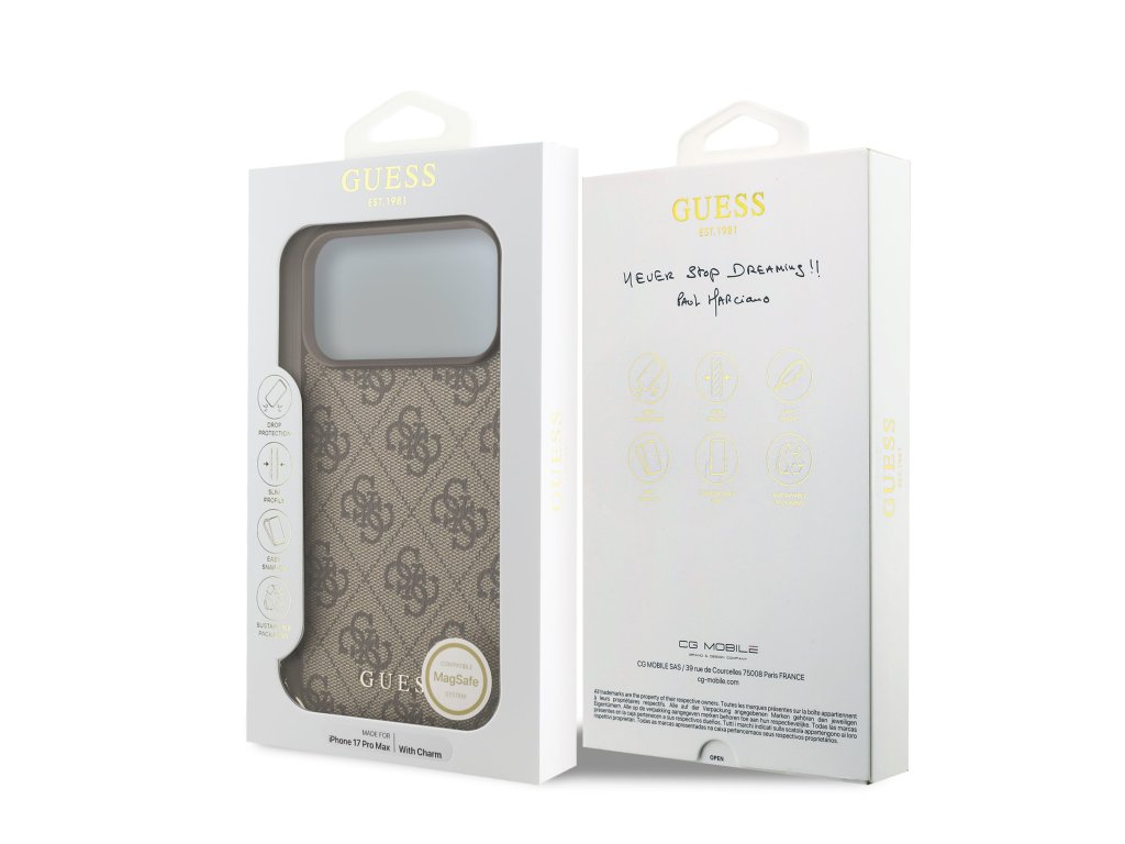 Guess 4G Charm MagSafe Zadní Kryt pro iPhone 17 Pro Max Tone on Tone Brown