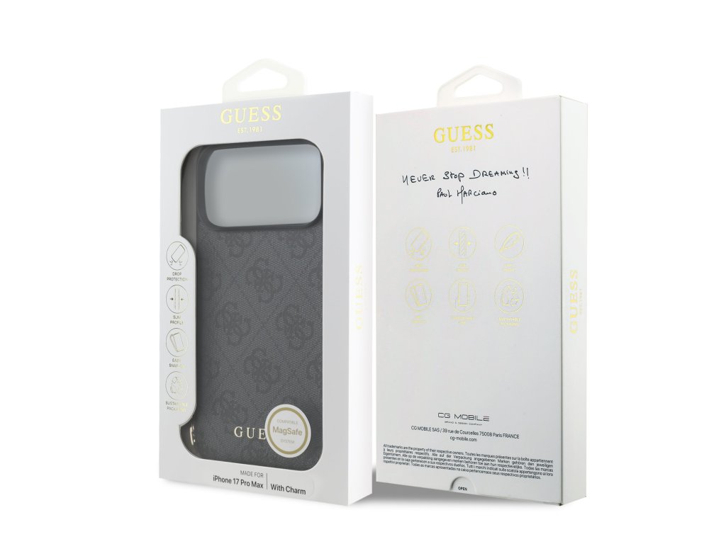 Guess 4G Charm MagSafe Zadní Kryt pro iPhone 17 Pro Max Tone on Tone Grey