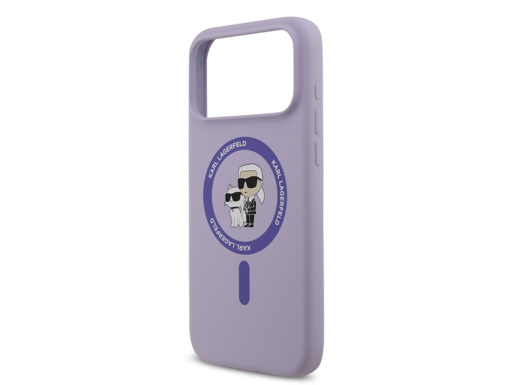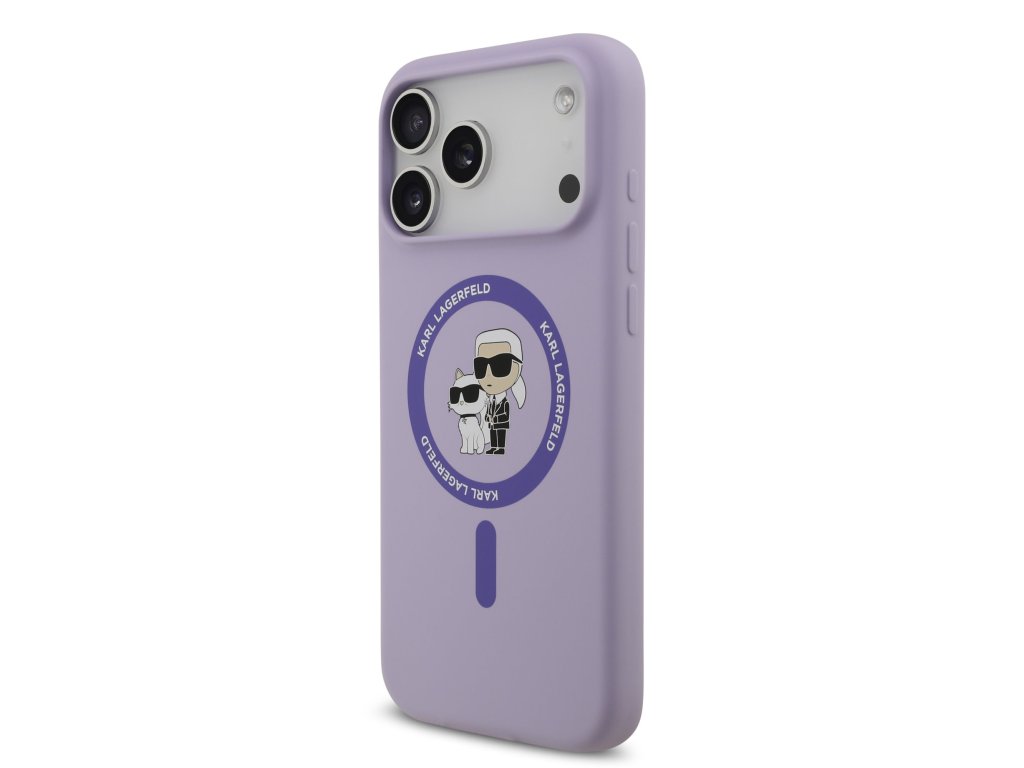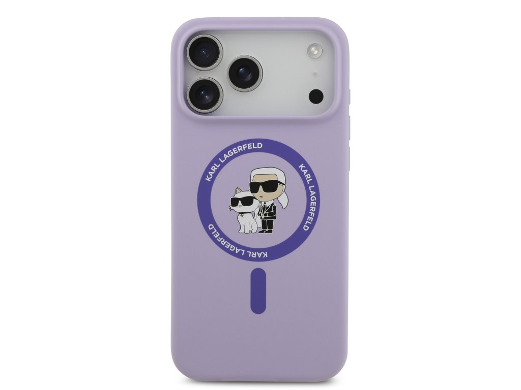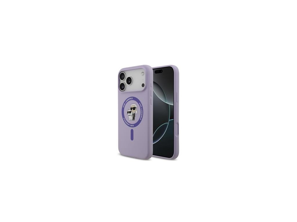 Karl Lagerfeld Liquid Silicone Karl and Choupette MagSafe Zadní Kryt pro iPhone 17 Pro Max Purple