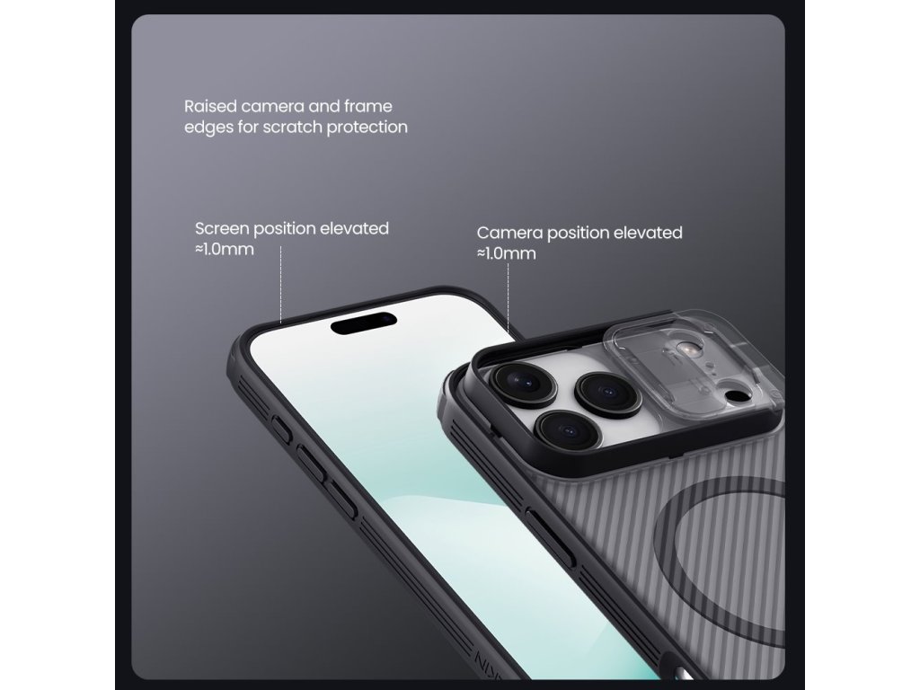 Nillkin CamShield PRO Magnetic je unikátní kryt s posuvným krytem čočky fotoaparátu a integrovaným magnetem. Oproti klasickému CamShield je unikátní v tom, že se skládá ze dvou materiálů a je vybaven magnetem. Záda krytu jsou vyrobena z pevného a odolného plastu a to včetně krytu fotoaparátu. Rámeček krytu je vyroben z měkčeného TPU plastu, pro nejlepší ochranu okrajů a rohů telefonu. Oba dva materiály jsou vysoce odolné proti opotřebení, ale také proti otiskům prstů a mastnotě. Přesné výřezy na ovládací prvky a potřebné konektory zajišťují pohodlnou obsluhu telefonu. Vlastnosti: - materiál: TPU, PC - Integrovaný magnet - ochranný kryt - perfektně padne na daný typ telefonu - perfektní ochrana vašeho fotoaparátu - protiskluzový designDoplňkové parametry