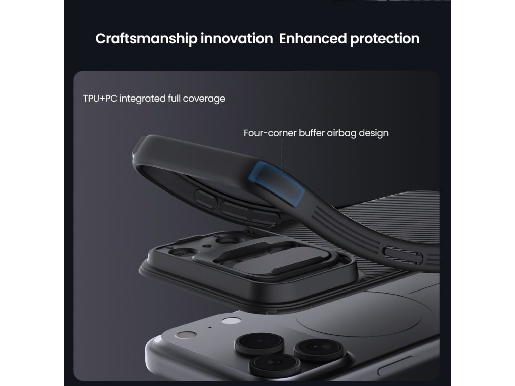 Nillkin CamShield PRO je unikátní kryt s posuvným krytem čočky fotoaparátu. Navíc je oproti klasickému CamShield unikátní v tom, že se skládá ze dvou materiálů. Záda krytu jsou vyrobena z pevného a odolného plastu a to včetně krytu fotoaparátu. Rámeček krytu je vyroben z měkčeného TPU plastu, pro nejlepší ochranu okrajů a rohů telefonu. Oba dva materiály jsou vysoce odolné proti opotřebení, ale také proti otiskům prstů a mastnotě. Přesné výřezy na ovládací prvky a potřebné konektory zajišťují pohodlnou obsluhu telefonu. Vlastnosti: - materiál rámečku TPU - materiál zadní strany PC - posuvný kryt pro ochranu čočky fotoaparátu - perfektně padne na daný typ telefonu - měkčený rámeček pro maximální ochranuDoplňkové parametry
