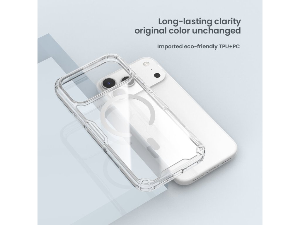 Nillkin Nature TPU PRO Magnetic ochranný kryt telefonu s integrovaným magnetem pro Apple MagSafe příslušenství. Kryt je oproti klasickému Nature TPU vybaven magnetem a je vyrobený z kombinace dvou materiálů PC/TPU. Odolný a pevný polykarbonát (PC) na zadní straně, který je odolný proti poškrábání a TPU pružný materiál na bocích. PC část krytu zůstává barevně stálá a nežloutne jako jiná pouzdra. Díky této kombinaci poskytne tu nejlepší ochranu pro Váš telefon. Ochrání ho spolehlivě před poškrábáním, prachem ale také velmi dobře při nechtěném pádu. Kryt je tenký a z čirého materiálu, který podtrhne design Vašeho telefonu. Díky nízké tloušťce podporuje i bezdrátové nabíjení. Přesné výřezy na ovládací prvky a potřebné konektory zajišťují pohodlnou obsluhu telefonu. Vlastnosti - Materiál TPU/PC - Pevný polykarbonát (PC) na zadní straně - PC část krytu nežloutne a zůstává barevně stálá - Měkké TPU boky - Integrovaný magnet pro Apple MagSafe příslušenství - Perfektní ochrana telefonu - Plně přístupná tlačítka a konektory - Vyroben přesně na míru telefonuDoplňkové parametry