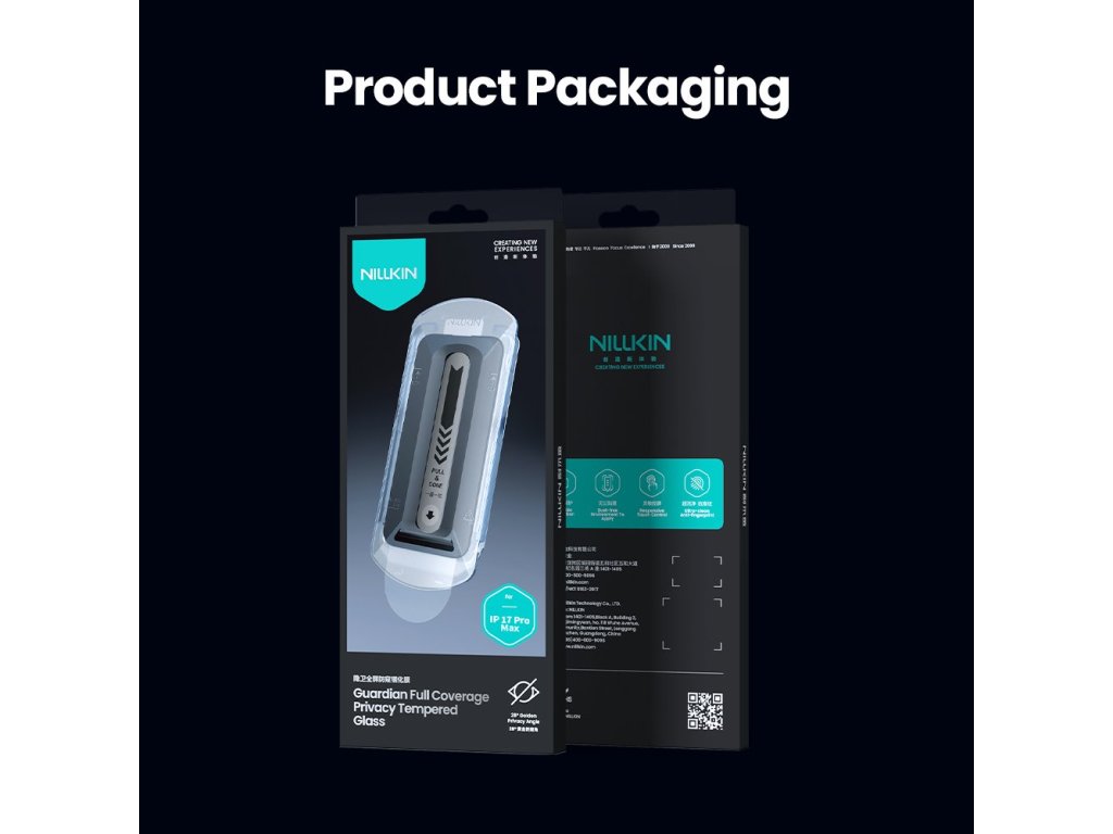 Tvrzené sklo Nillkin Guardian poskytuje maximální ochranu vašeho displeje před poškrábáním i nárazy a zároveň chrání vaše soukromí. Vaše soukromí je v bezpečí díky zbrusu nové vrstvě, která umožňuje viditelnost pouze v úhlu 28°. Antireflexní a oleofobní vrstva, která minimalizuje otisky prstů a snadno se čistí, zajišťuje příjemný uživatelský zážitek. Sklo má 2,5D zaoblené hrany, které jsou hladké na dotek a zajišťují pohodlné používání. Navíc balení obsahuje aplikátor, který výrazně usnadňuje a zrychluje proces instalace. Je navržen tak, aby zajistil naprosto přesné zarovnání skla s displejem telefonu. Díky němu můžete snadno nainstalovat tvrzené sklo na displej bez rizika špatného umístění nebo tvorby vzduchových bublin. Vlastnosti: - Tvrdost 9H - Zaoblené hrany: 2.5D - Viditelnost pouze v úhlu 28° - Instalační aplikátor v balení - Lepící vrstva po celé ploše skla - Sklo kryje jen rovnou část displeje - Antireflexní a oleofobní vrstvaDoplňkové parametry