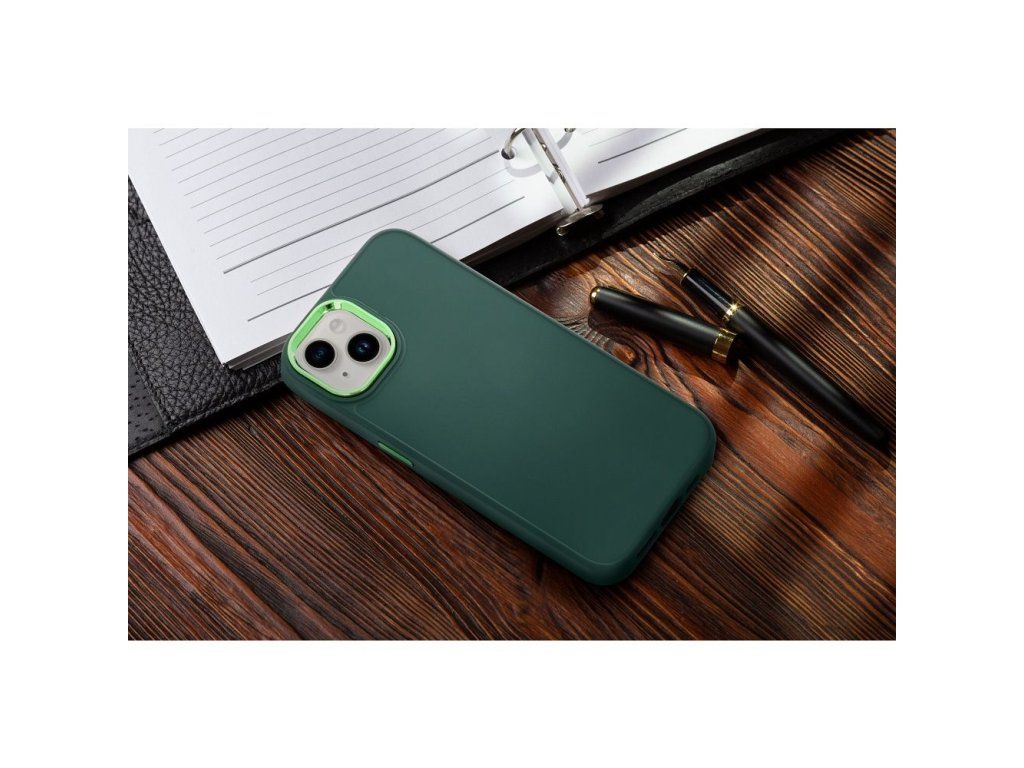 Matná povrchová úprava v zelené barvě působí elegantně a svěže. Zvýšenou ochranu fotoaparátu poskytuje rámek z pevného PC s galvanickou povrchovou úpravou, barevně sladěnou s designem krytu.