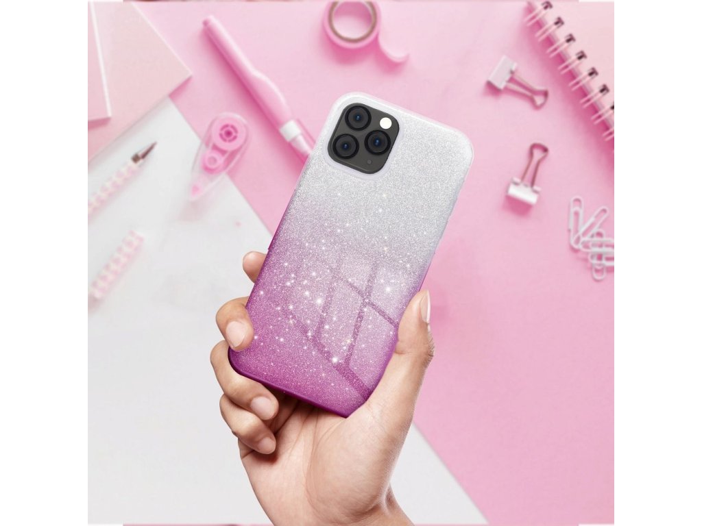 Pouzdro je tvořeno třívrstvou konstrukcí – pružným TPU, pevným PC a třpytivým práškem. Díky tomu je lehké, tenké a zároveň odolné proti poškrábání i drobným nárazům. Zvýšené hrany chrání displej i fotoaparát před poškozením.
