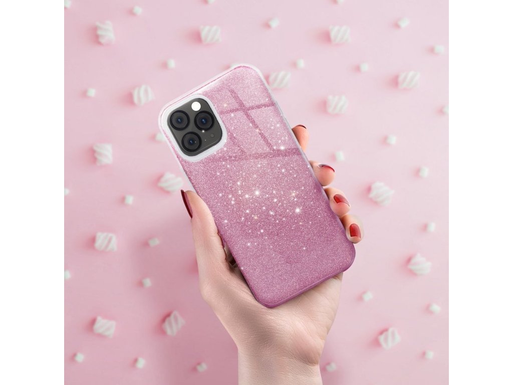 Pouzdro je tvořeno třívrstvou kombinací materiálů – pružné TPU, pevné PC a třpytivého prášku. Díky tomu je lehké, tenké a zároveň odolné proti poškrábání a drobným nárazům. Zvýšené hrany chrání displej i fotoaparát při každodenním používání.