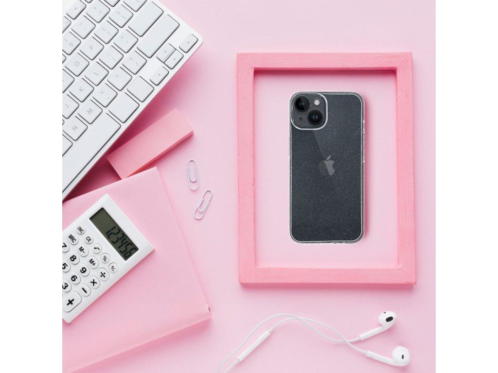 Pouzdro CLEAR Case 2mm BLINK pro APPLE IPHONE 16 Plus je vyrobeno z kvalitního, 2 mm silného flexibilního TPU s jemnými stylovými třpytkami, který telefon neztlušťuje a zároveň jej chrání před poškozením při pádu. Zvýšený okraj kolem ostrůvku fotoaparátu chrání jeho čočky.