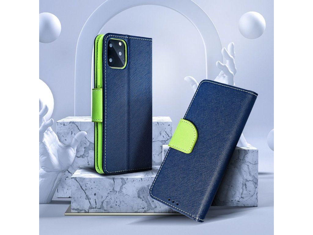 Pouzdro Fancy Book APPLE IPHONE 16 PLUS navy blue / limonka